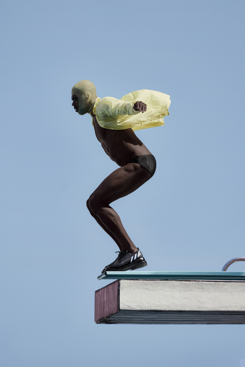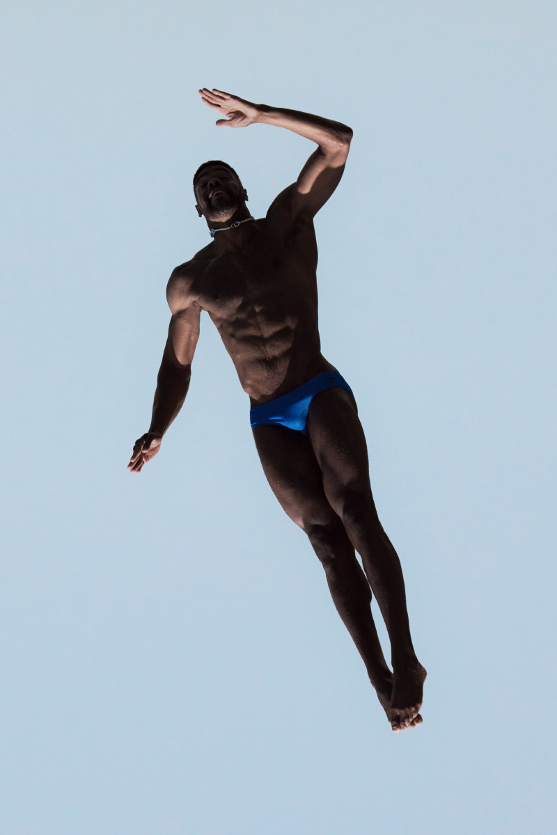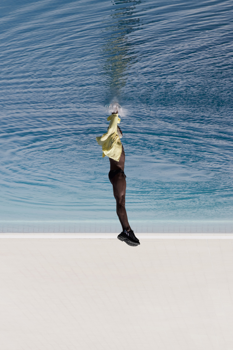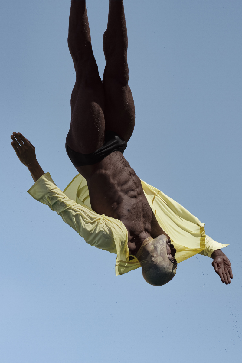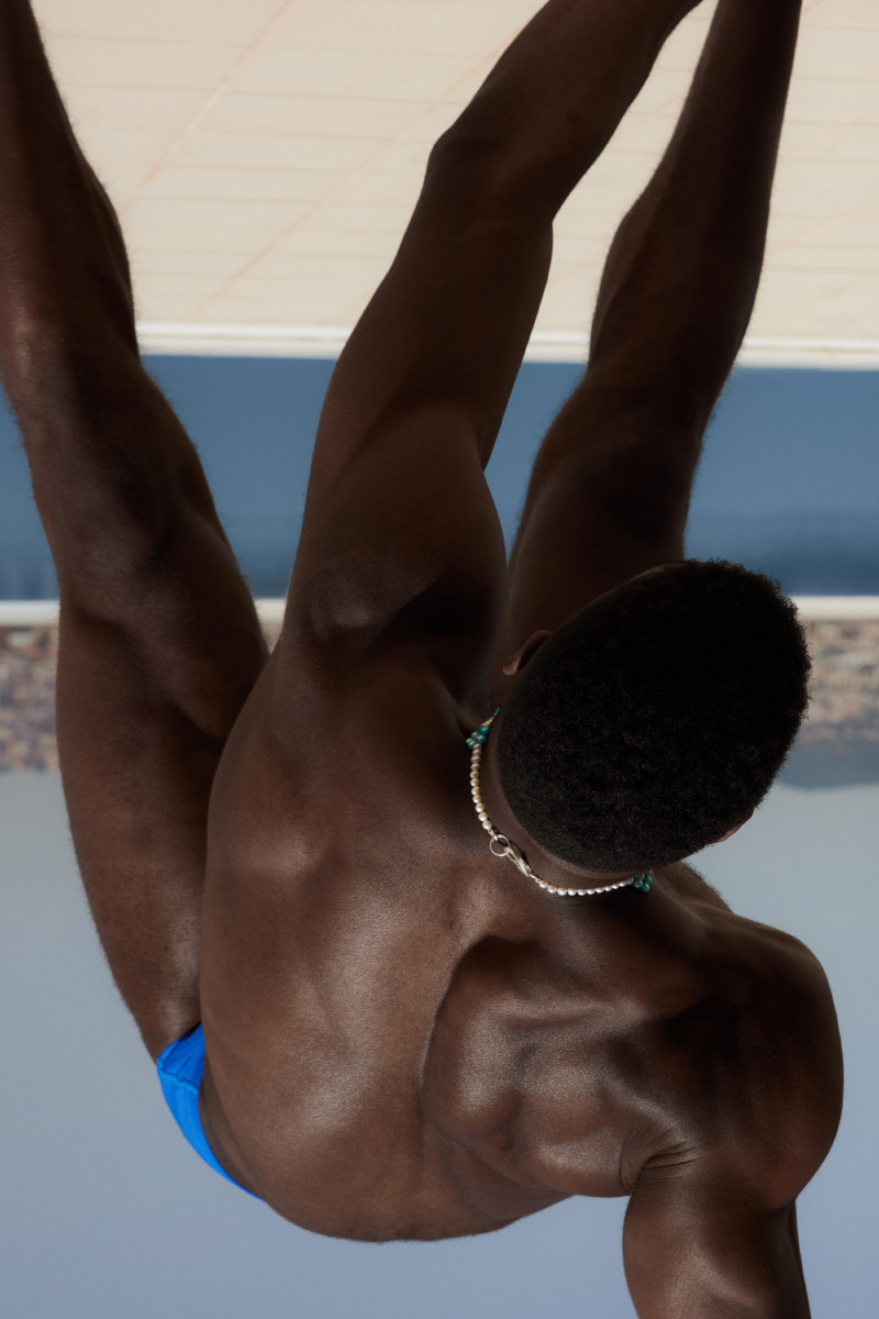 Proud to the fullest of their Caribbean DNA (something fundamental to them), the dive introduces and celebrates Yona Knight-Wisdom, the first Jamaican platform diver to compete in the Olympics. Yona’s mastery of her craft conveys the beauty of a sport that uses the human body artistically as a canvas for expression. This is where the natural connection to fashion comes in.