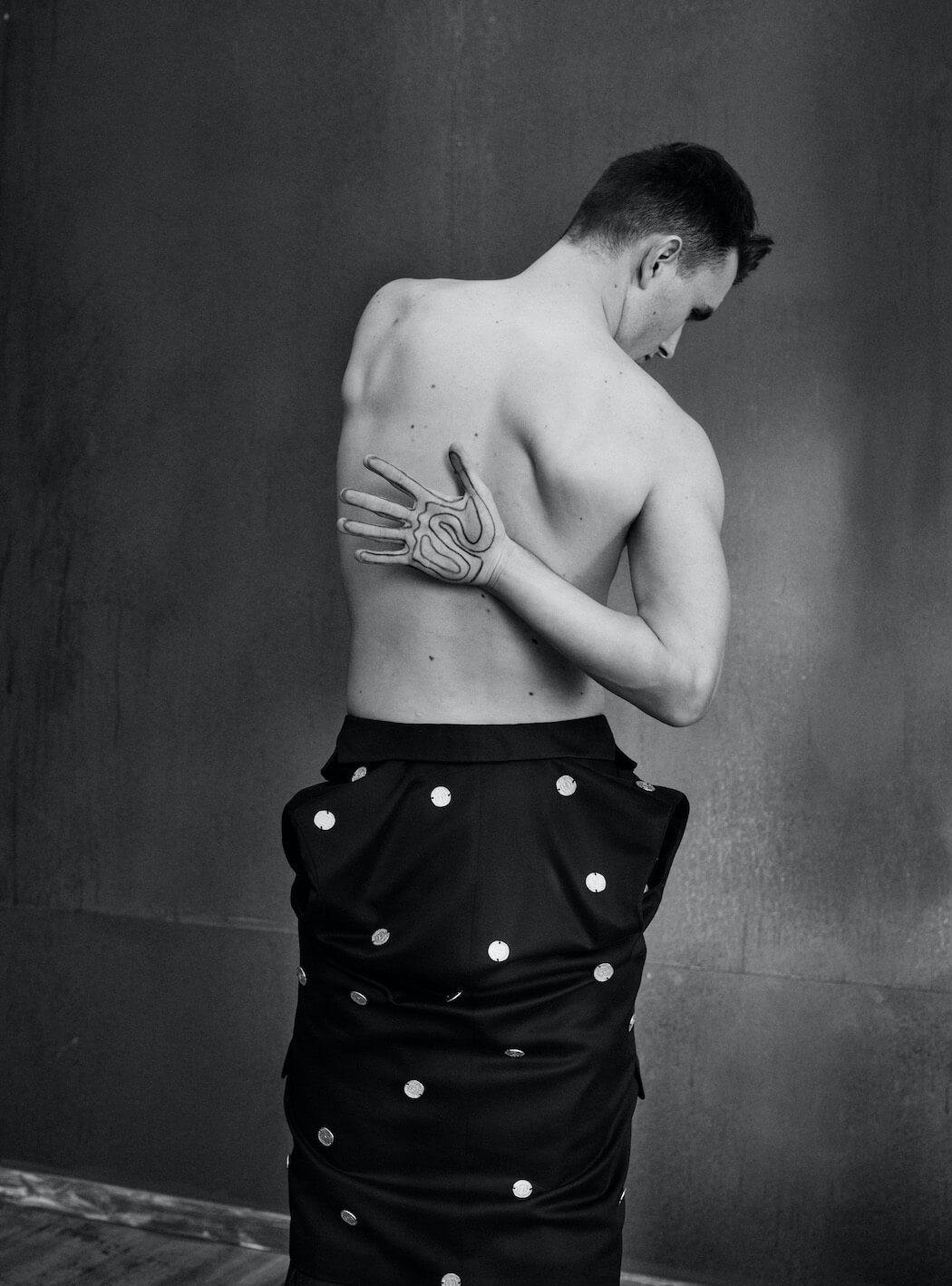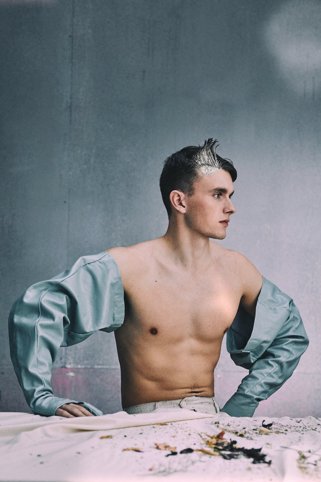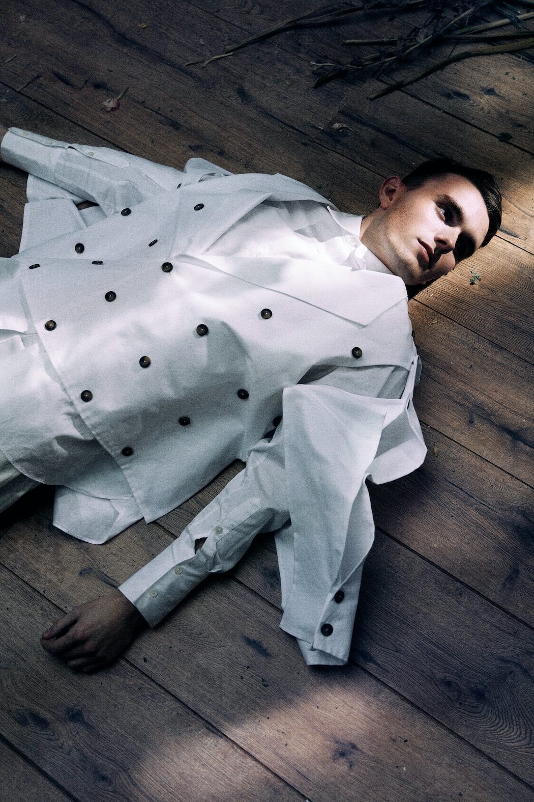 A KALTBLUT exclusive menswear story. Photography by Hans Andersson. Make up by Elin Laine. Styling by Anton Wang. A story about a boy and his melancholic, singular, costume party. Model is Lennart Frandsen. Designers are Felicia Åström / Beckmans, Ada Swärd / Beckmans, Hanna Isaksson / The Swedish School of Textiles, Fredrik Möller / The Swedish School of Textiles, NAND, HOPE, Acne, Filippa K and Remake.