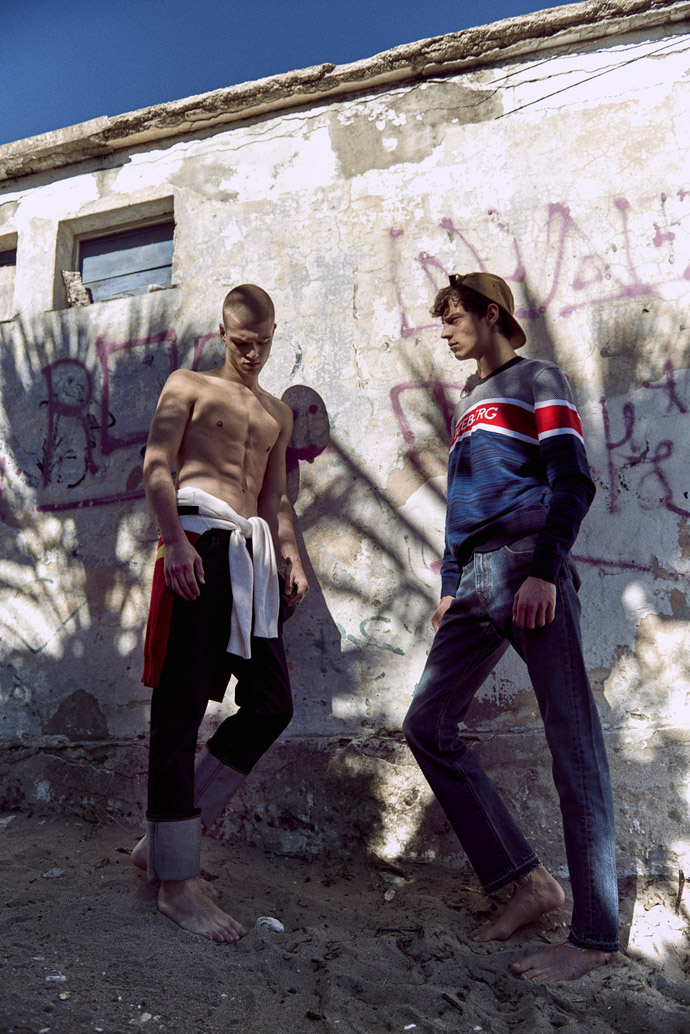 A KALTBLUT exclusive menswear editorial. Photography by Manuel Scrima. Models are Luca Sweeney signed to Elite Milan and Andrea Quaranta signed to Why Not Models. Grooming by Mara Cifronti. Styling consultancy by Francesco Pisani. Fashion by Iceberg, Levi’s, Asics, Moschino, Versace, Moose Knuckles, Le Tonerre Studio, Tom Rebl and Yezael.