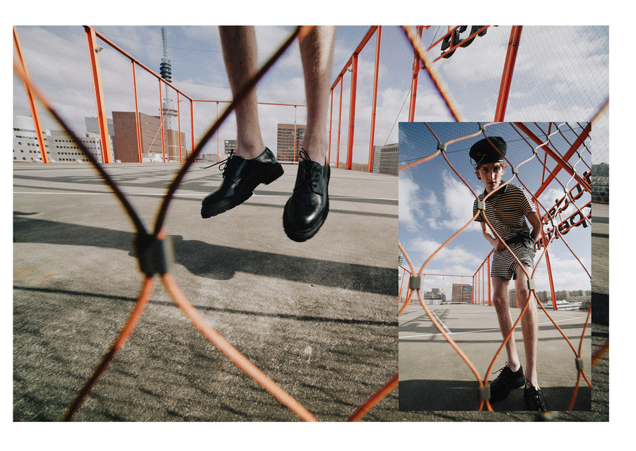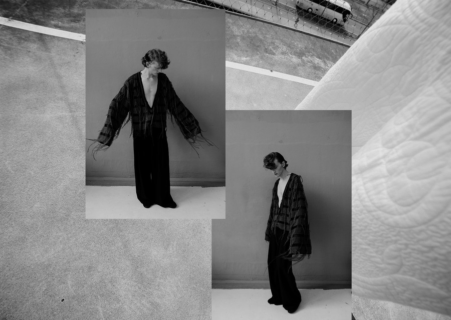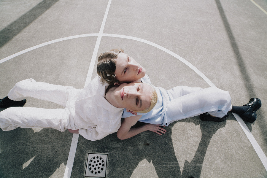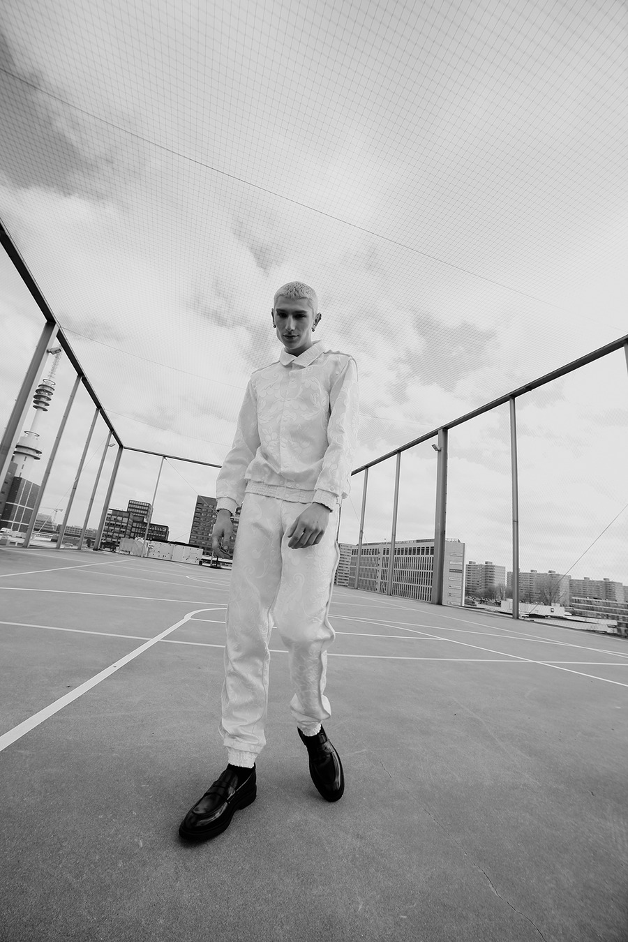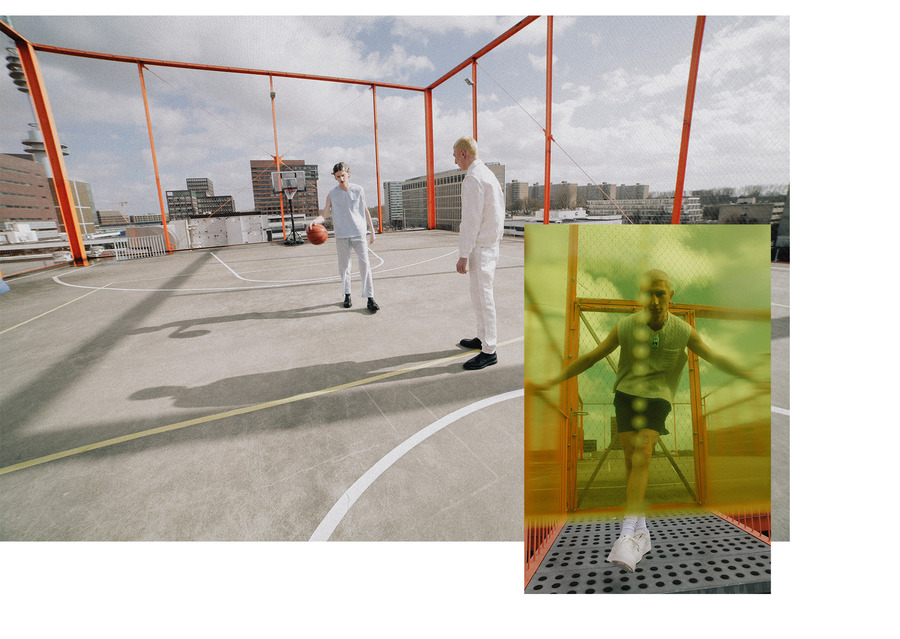Photographer Nienke Wind captured Toma Aardenburg and Simon Beckers for a KALTBLUT exclusive. Styling by Anouk Klijn. Makeup by Estefania ter Heerdt. Fashion by Prada, Rosa Kampinga, Floor Klaassen, H&M, Zara, Kemkes, Arket, Puma, and GCDS.