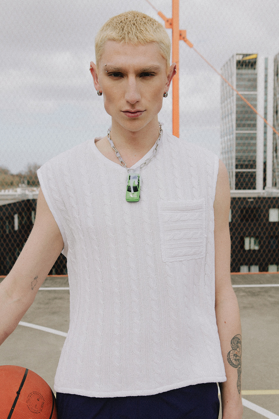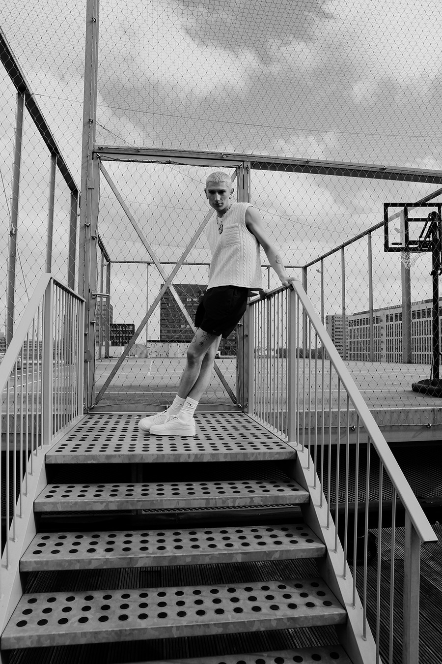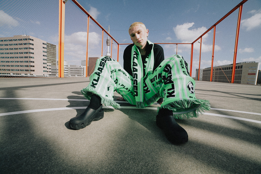 Photographer Nienke Wind captured Toma Aardenburg and Simon Beckers for a KALTBLUT exclusive. Styling by Anouk Klijn. Makeup by Estefania ter Heerdt. Fashion by Prada, Rosa Kampinga, Floor Klaassen, H&M, Zara, Kemkes, Arket, Puma, and GCDS.