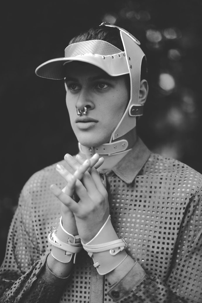 Jan: Leather Helmet and Leather Cuffs by Marina Hoermansender