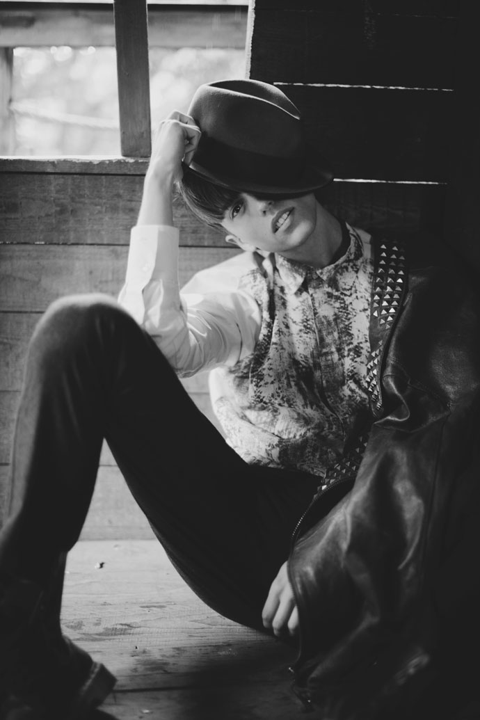 Georg: Shirt by Marc Stone, Trousers by Tiger of Sweden Men, Leather Jacket by Matthew Williamson, Shoes by Dr. Martens