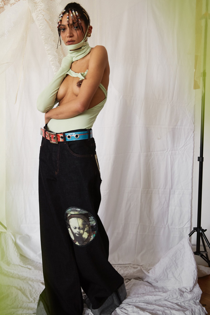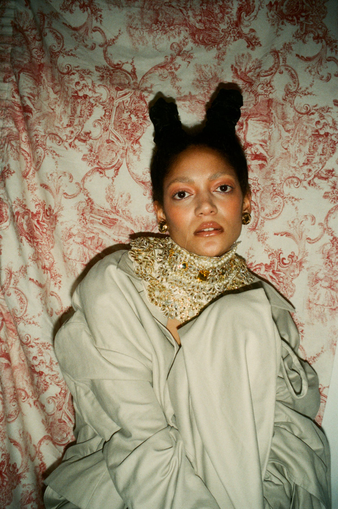 A KALTBLUT exclusive womenswear editorial. Photography and Set design by Eve Power. Model is Donnika Anderson signed to Nevs Models. Styling, Set and Words by Léa Federmann. Make Up by Sophie Cox. Hair by Shab Malik. ” ‘Brand new tradition’ editorial explores unapologetic black subculture merging traditional jewelries, modern accessories and a mix of both traditional and modern clothes. Feminity and sensuality can be perceived and represented in many ways depending on beliefs and history, every culture has it’s own way to embellish the body and that is what we wanted to highlight in this story. Therefore hairstyles were a major part of this editorial, just as they have a major importance in traditional black culture, aiming to create a sense of beauty. Hairstyles have historical and religious connections and have always been used to convey specific messages in society. The hair is the most elevated part of the body and was also considered a portal for spirits to pass through to the soul.