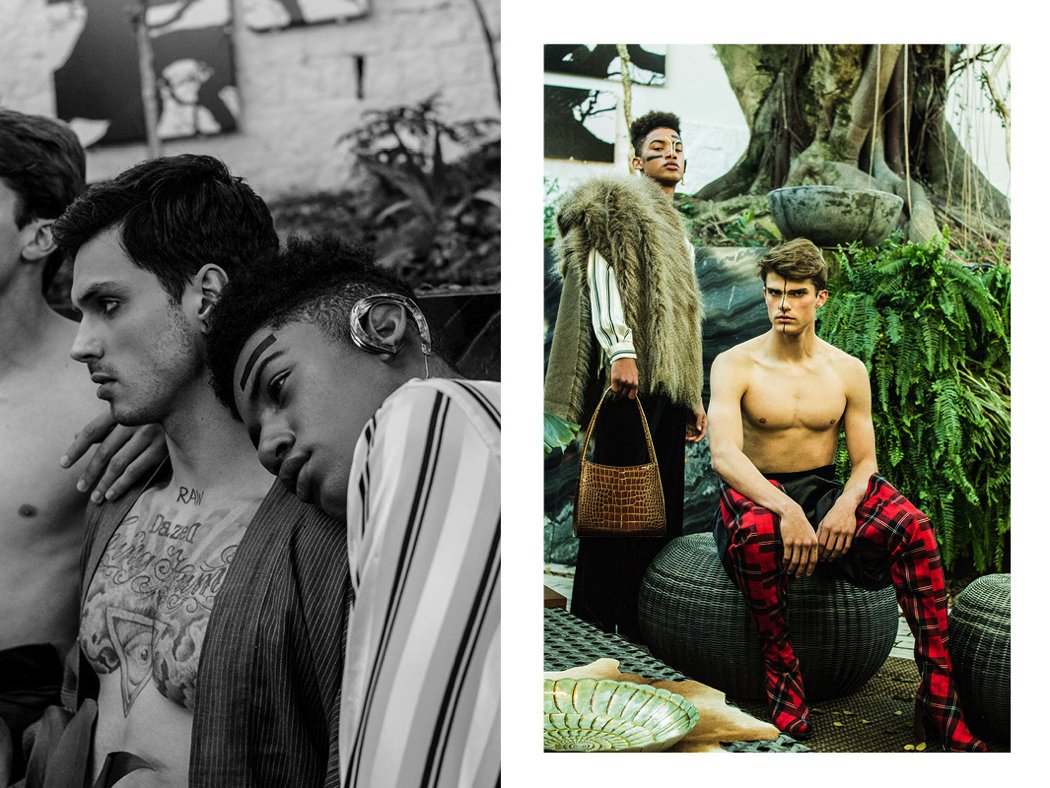 – Patricia wears jumpsuit Bruna Ogawa eand earrings Galeria Alice Floriano. Rafael wears wigs stylist’s own and boots Okoko&Abel. Rafael wears wigs stylist’s own and boots Okoko&Abel. Amanda wears jumpsuit Xanny and earring Alice Floriano. Amanda blazer and corset stylist’s own and earrings Aisegul Telli at Galeria Alice Floriano. Patricia wears dress Rosane. Valentina wears dress Vitória Gonçalves, hat Vitória Fronza and ring Aisegul Telli at Galeria Alice Floriano. Valentina wears chemise Dior, skirt Yves Saint Laurent, dress Nuz, coat stylist’s own boots Okoko & Abel ( Right ) Vitor wears dress Rosane, blazer stylist’s own, ear cuff Joanne T at Galeria Alice Floriano. Guilherme wears kimono NUZ, nose cuff Joanne T at Galeria Alice Floriano and boots Okoko & Abel. Vitor wears chemise Dior, trousers Xanny, bag and faux fur Stylist’s Own, nose cuff Joanne T at Galeria Alice Floriano and earrings Alice Floriano. Rafael wears trousers Xanny, boots Okoko&Abel and nose cuff Joanne T . Vitor wears chemise Dior, trousers Xanny, bag and faux fur Stylist’s Own, nose cuff Joanne T at Galeria Alice Floriano and earrings Alice Floriano. Rafael wears trousers Xanny, boots Okoko&Abel and nose cuff Joanne T . João wears chemise, trousers and coat NUZ, broch Jelizaveta Suska at Galeria Alice Floriano. ( left ) João wears dress Rosane and jacket Stylist’s own.