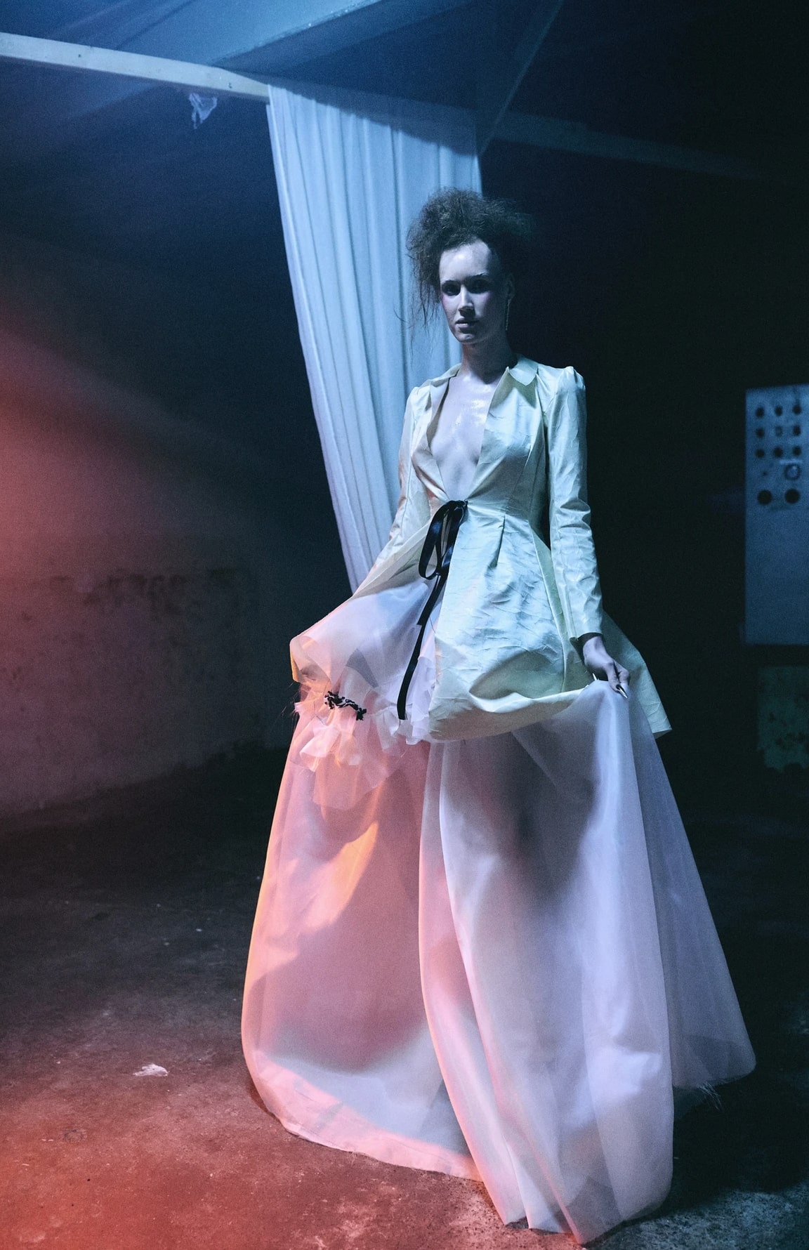 With a predisposition for the gothic, deconstruction abounds throughout the collection; unfinished hems and raw edges speak to the imperfections of the human experience, a constant reminder that beauty cannot exist without a lack thereof. Like the women once believed to be witches, skirts and dresses have been burnt – a representation of the societal restrictions we long to eschew in favour of freedom.
