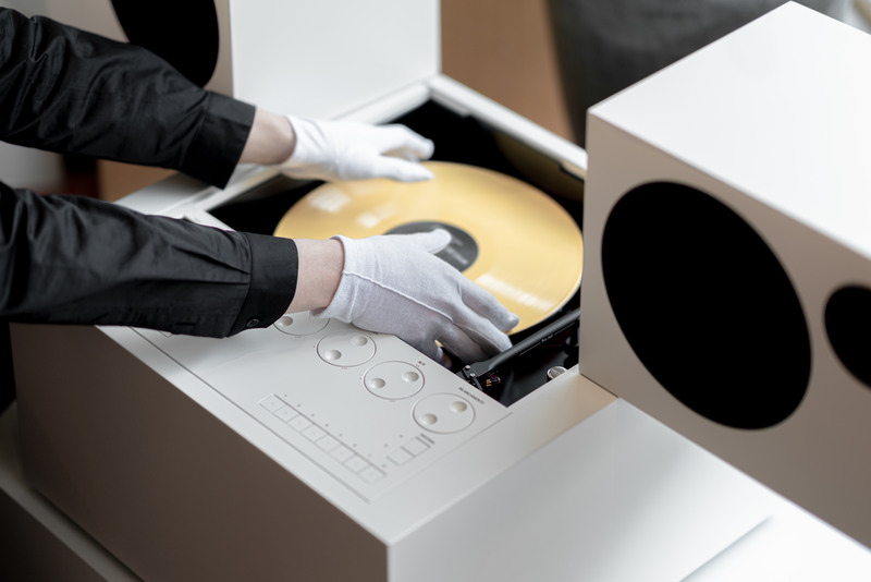 When the stereo system is closed, it is a simple cube. But as soon as it is opened, the speakers rotate outwards and act like wings. The product manages to perfectly combine form and sound. Opening the cube, inserting the disc, and starting the music create a kind of ritual for the user. The product is a piece of modern art, transforming an apparently reduced form into something larger.