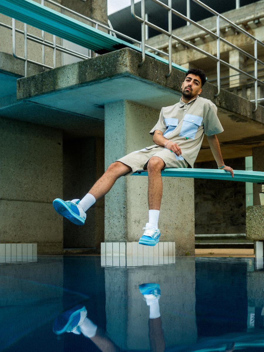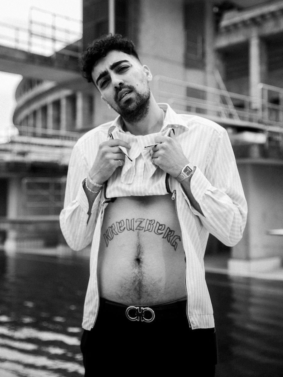 Not only my own clothes though. Also the clothes of my good friend Naud Verboeket who is the man behind the Dutch cult brand TEARS. TEARS is already widely spread in the rap scenes of the Netherlands & Belgium (think Joost, Kleine Crack, Ray Fuego & SOR). In the photoshoot that I planned with Berlin-based rapper & musician BRKN, I wanted to incorporate the Dutch streetwear heritage I brought with me when I moved to Cologne in February 2021 and give it a stage in two different landscapes inspired by illustrator G. Barbier’s 1913 fashion illustration “Costume de Bain”.”