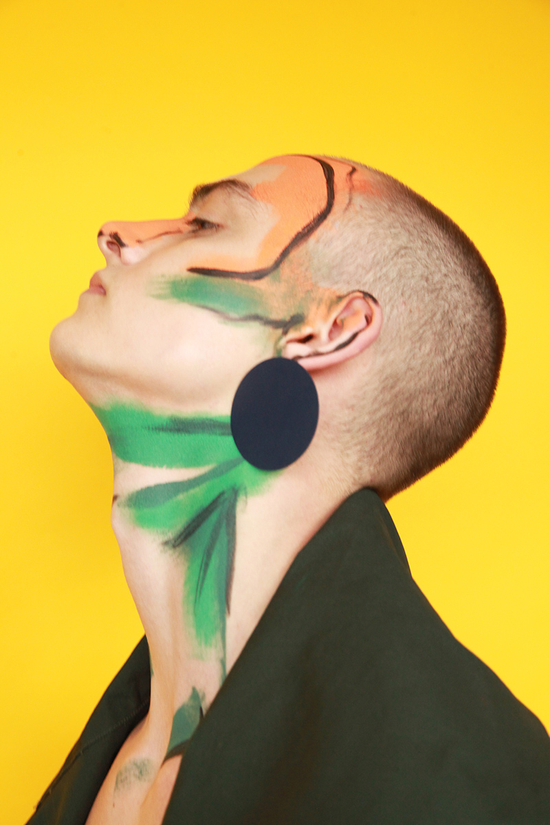 KALTBLUT exclusive, London photographer Karl Slater creates a mens beauty story inspired by contemporary London artist Bj Broekhuizen. Makeup by Faye Marie Quinton, Styling by Ignacio de Tiedra using fashions from Harry Xu, Nikolai Artemev and Michal Gruca. Model Oscar Boughen from NEVS.