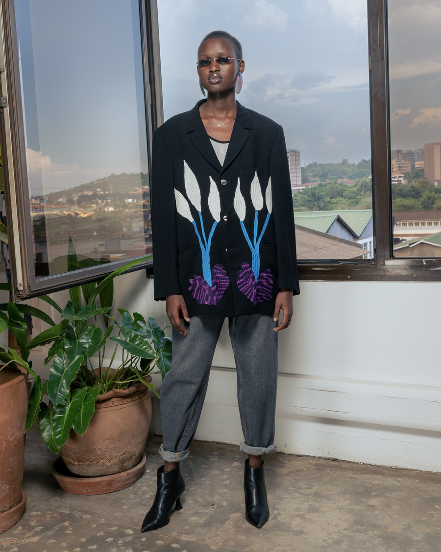 Continuing their meaningful collaborations, BUZIGAHILL joins forces with the esteemed Milaya Project and the Yangani Women’s Group, both based in the Bidi Bidi refugee settlement in northwestern Uganda. DROP06 proudly features wraps and blazers adorned with traditional South Sudanese embroidery, gracefully depicting scenes of their ancestral homes and dream-like floral patterns. Through their artistry, BUZIGAHILL sheds light on the rich cultural heritage of these communities.