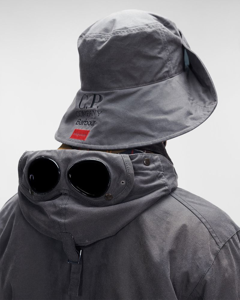 The collection features two jackets, the signature Barbour Mille wax jacket in olive and tan with three pockets and the Barbour 500 Miglia wax jacket in olive and charcoal which is shorter in length and features four pockets. All jackets have a military and utilitarian feel with the signature C.P. Company ‘Goggle hood.’
