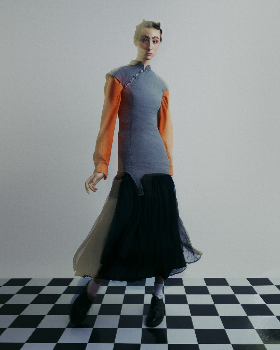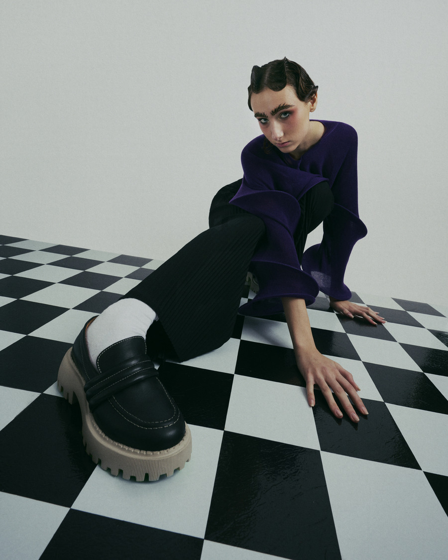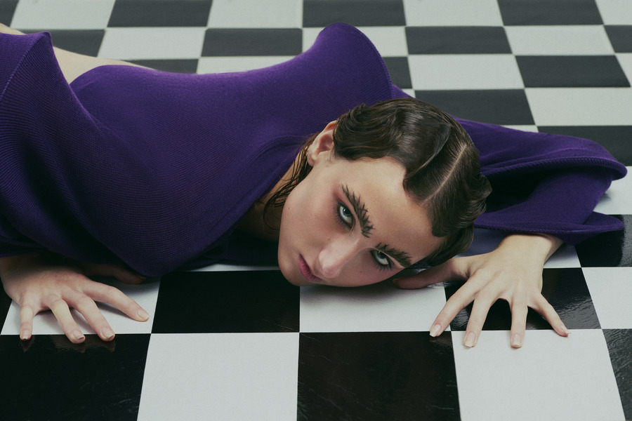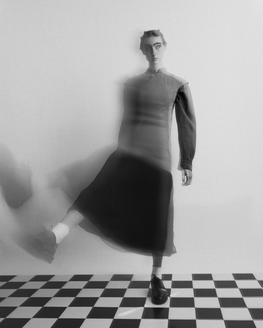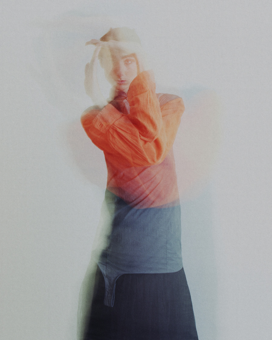 Photographer Gustavo Chams captured Alex Degrazio signed at Family Mgmt for a KALTBLUT exclusive. Styling by Keiichiro Hara. Make up by Rio Translado. Hair by Janis Bekkering. Brands used are Self Portrait, Cos, Mihara Yasuhiro, Pikolinos, Our Legacy, Sunnei, Ateliers, Doublet, Filippa K, Raf Simons, Hyein Seo, Issey Miyake, Maje, Dm’s × Undercover, Laperla, Alexander Wang, Feng Chen Wang, Dm’s × Our Legacy Work Shop, Rui, Shoe The Bear.