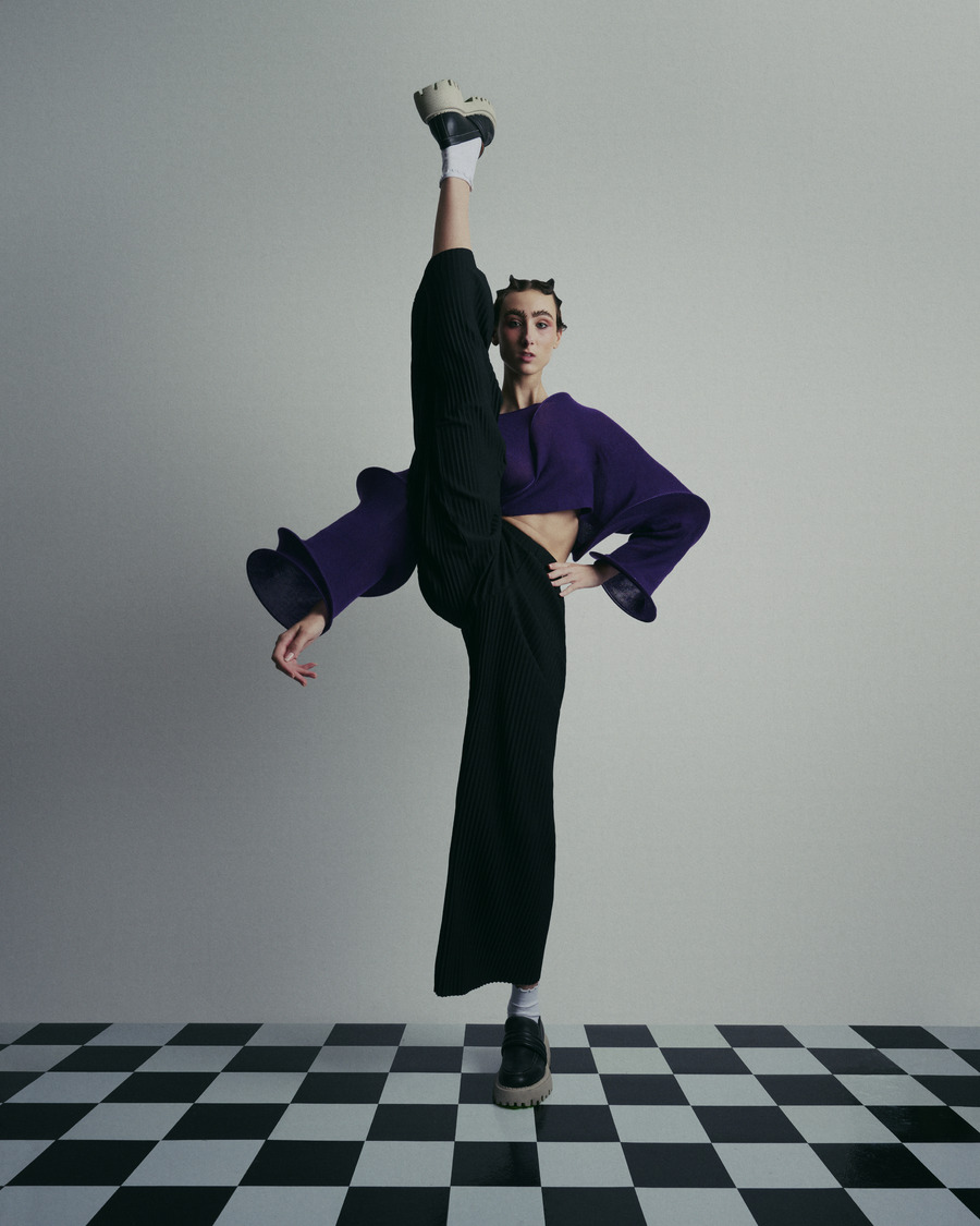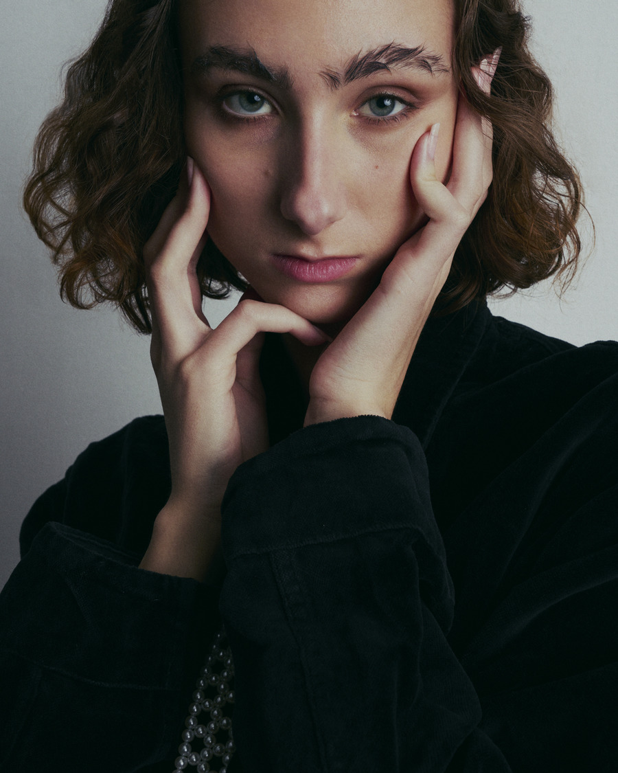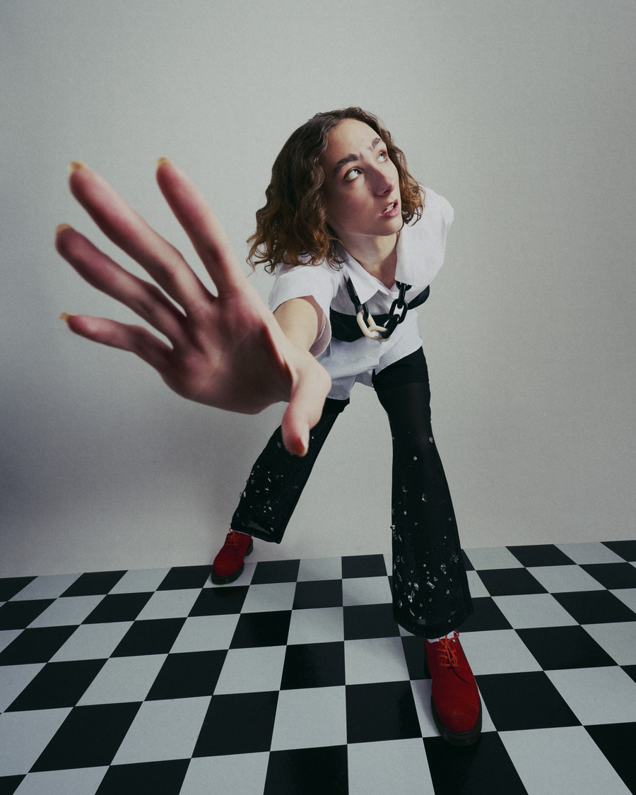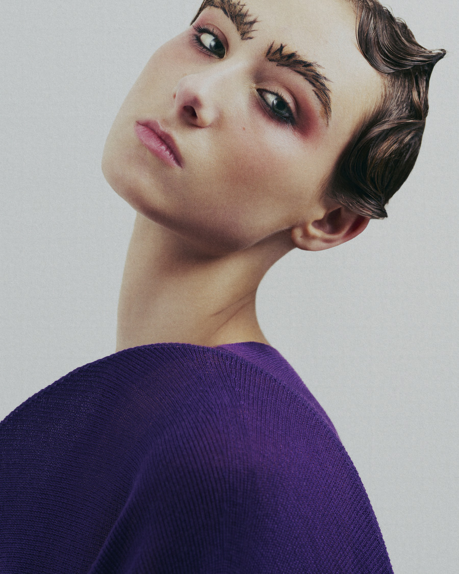 Photographer Gustavo Chams captured Alex Degrazio signed at Family Mgmt for a KALTBLUT exclusive. Styling by Keiichiro Hara. Make up by Rio Translado. Hair by Janis Bekkering. Brands used are Self Portrait, Cos, Mihara Yasuhiro, Pikolinos, Our Legacy, Sunnei, Ateliers, Doublet, Filippa K, Raf Simons, Hyein Seo, Issey Miyake, Maje, Dm’s × Undercover, Laperla, Alexander Wang, Feng Chen Wang, Dm’s × Our Legacy Work Shop, Rui, Shoe The Bear.