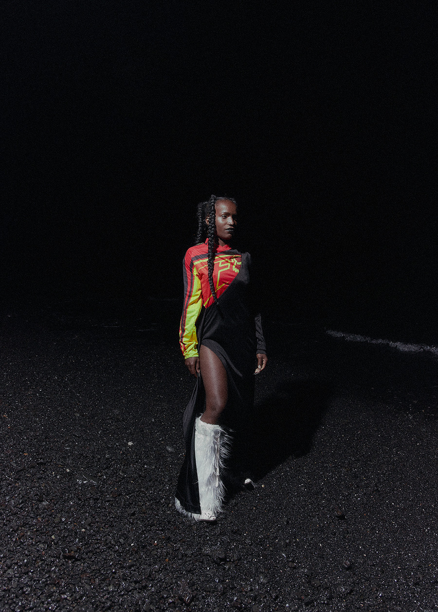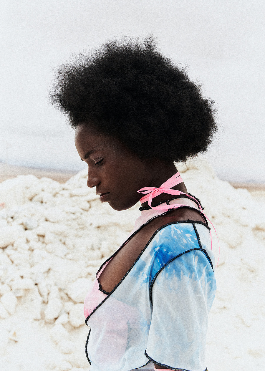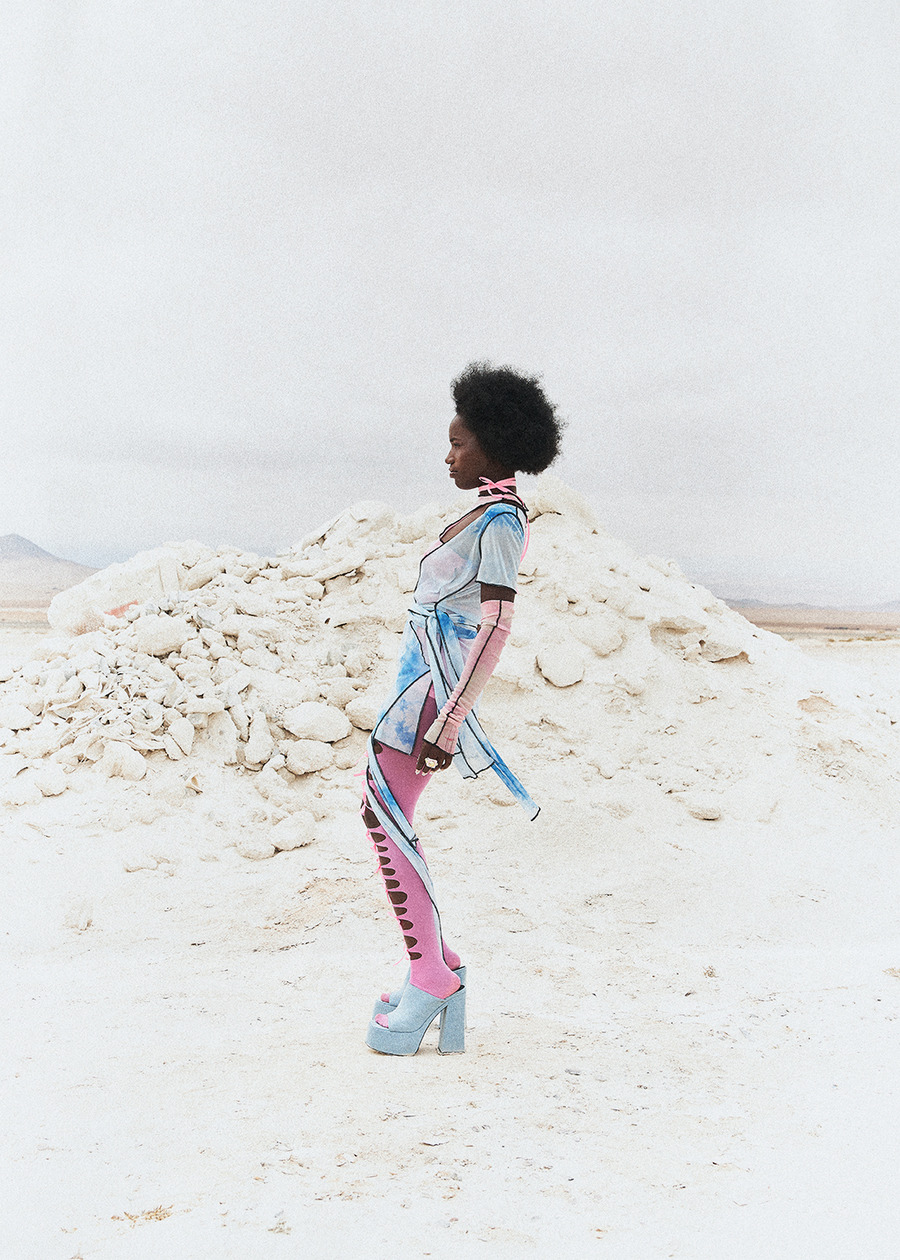 A KALTBLUT exclusive from Atacama, Chile. The model is Karen Landazuri. Photography by Gabriel Pérez. Styling by Cesar Campusano. Make up by Francisco Ayala. Hair by Catalina Olivero. Nails by Claudia Escudero. Brands used are Alexander Wang, Diesel, Wearpedritos, Alonefiles, Jothajerez, and Kappa.