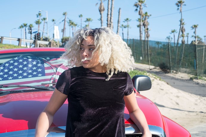 Photographer Maria Di Stefano says about the California High Lights story: “I was the artist in residence at ESMoA during the month of February. This work speaks about this specific time and this specific environment. It is a story that moves through contrasts. The California Oceanside and the industrial buildings, the exotic rich vegetation and the grey rainy sky. The uncertainty of freedom, the void and the surcharges of recognizing my self as an Artist.” Model is Khyreese Cleveland.