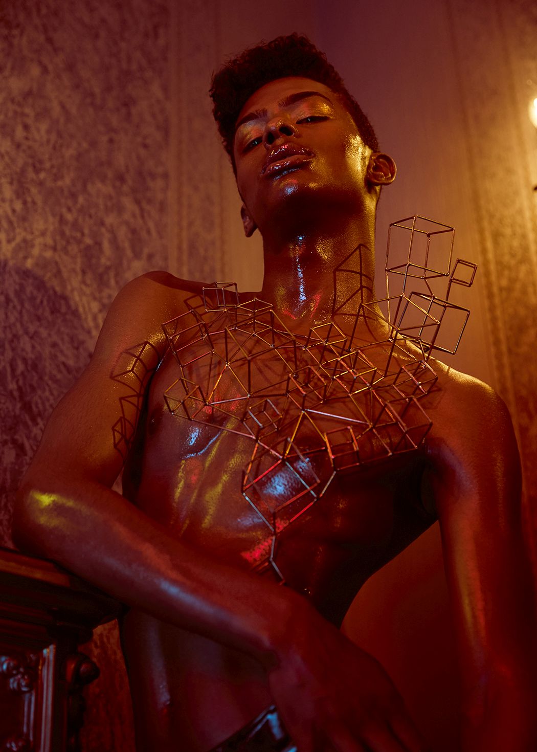 A KALTBLUT exclusive menswear editorial. Photography by Diego Reindel. Model is Federico Brens. Styling by Lorand Lajos. Make up by Daniela Schatz. Jewlery by VERSURA and Atelier Lorand Lajos.
