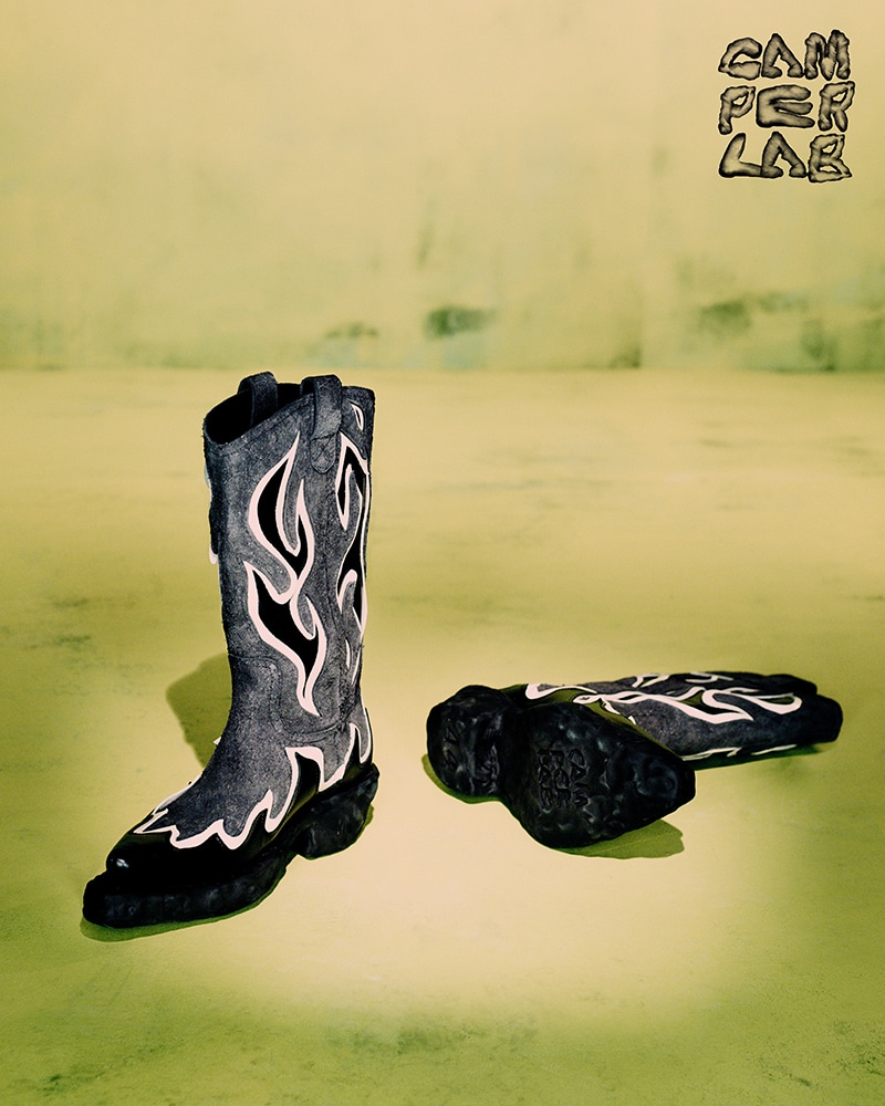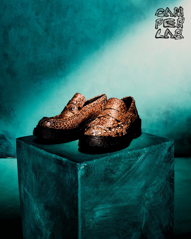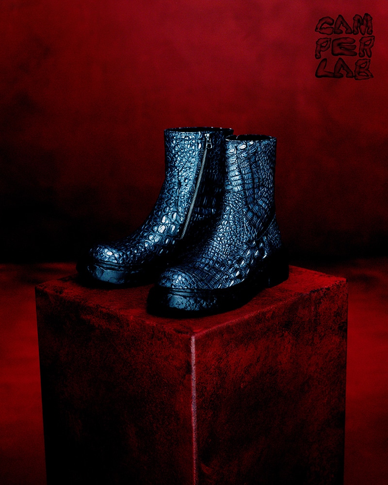 Minimalist backdrops in striking monochrome hues draw attention to both the collection and its wearers. This season boasts standout pieces such as the reinvented Venga cowboy boot in aged suede, one-of-a-kind Candiani jeans, and opulent crocodile-embossed leather co-ords. Adding further depth, intarsia knits with an edge infuse the collection with distinct character. The CAMPERLAB Fall/Winter 2024 collection is now available at camper.com and selected Camper boutiques.