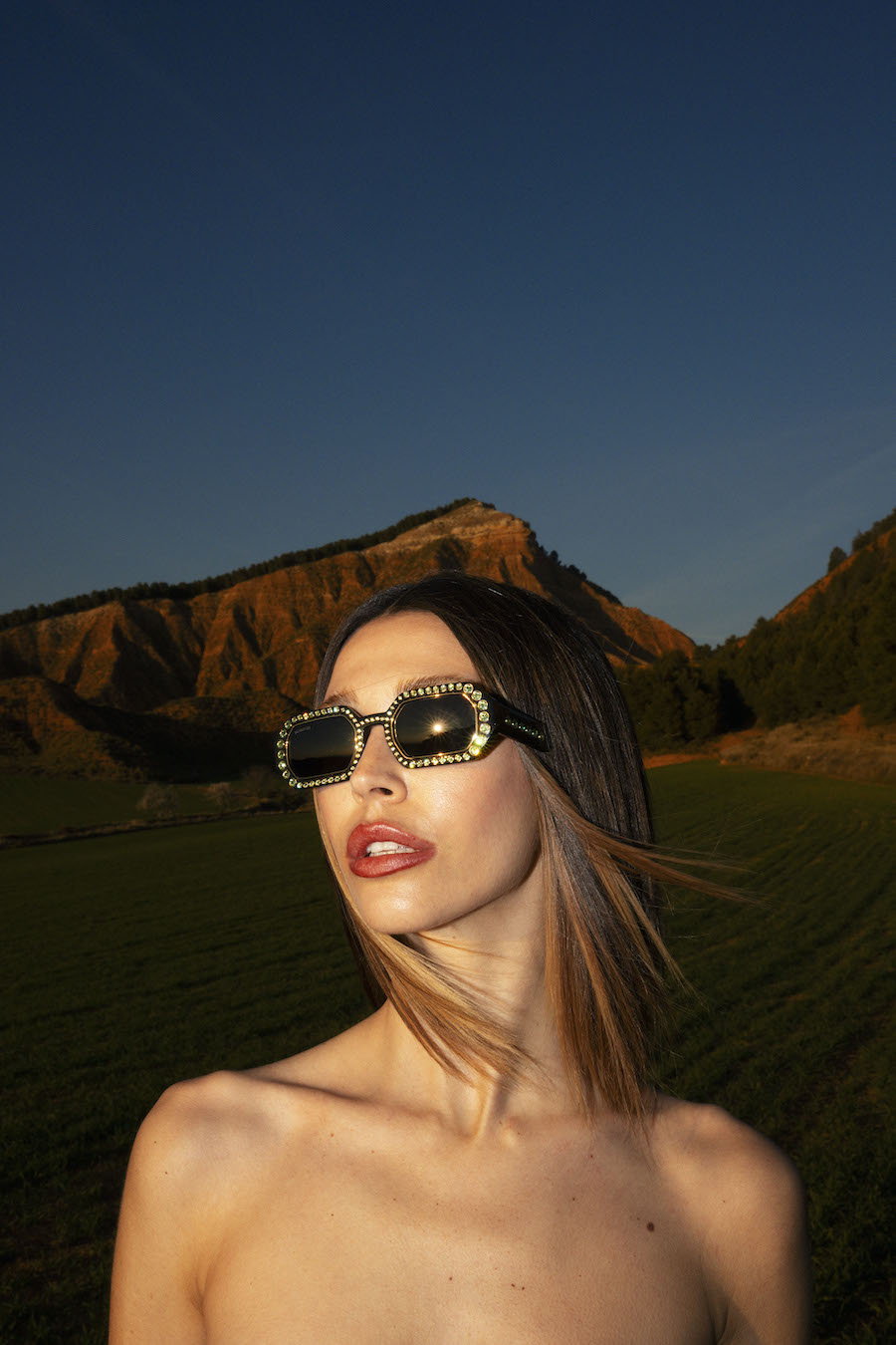 The naked body is covered with pieces from brands such as Skims, Fatty Glassy or Syndical Chamber and accompanied by accessories from brands such as Swarovski. A proposal that exudes power and sensuality in an idyllic setting.
