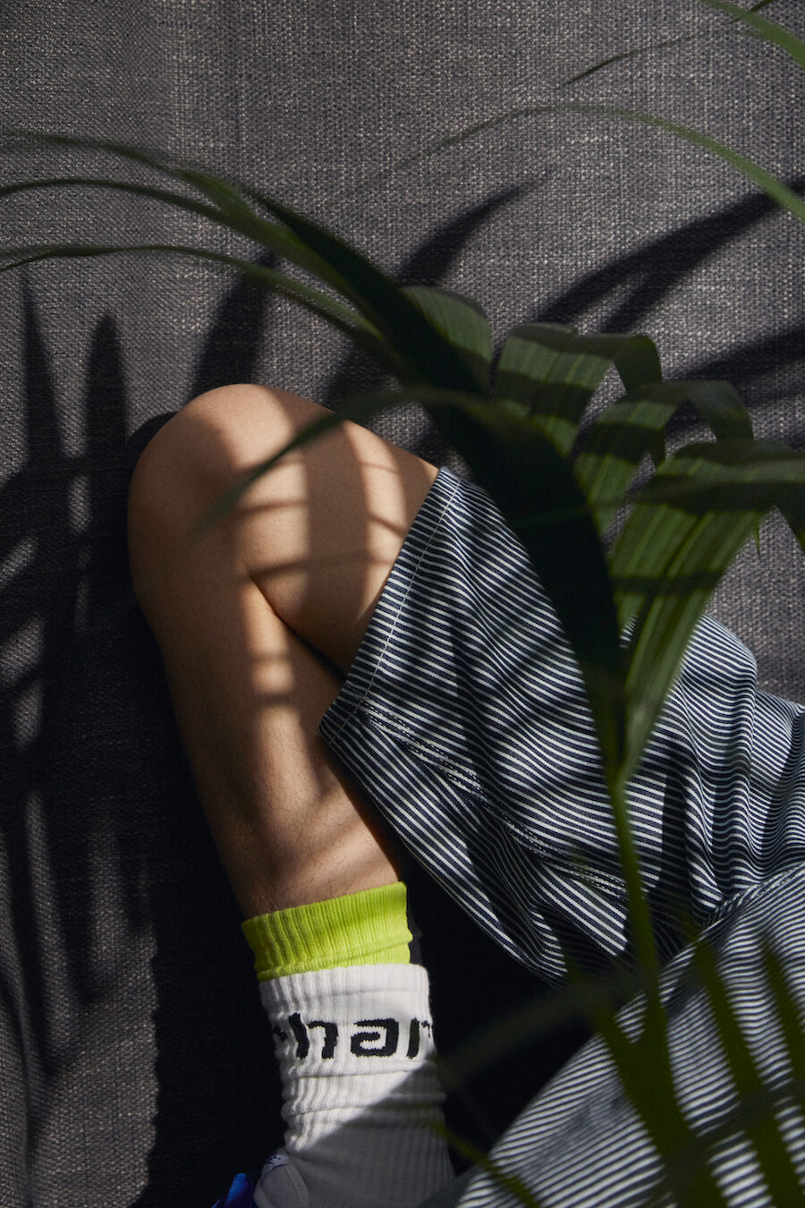 Some garments, such as the tech-inspired Hayes Vest and the Outdoor T-Shirt with its distinct mountaineering inspired label, not to times when we weren’T overcome by indoor inertia. Others, like the acid-hued Keegan Windbreaker, simply provide a pop of colour – in this case, a particularly stark, Day-Glo lime. The pieces are linked together by a playful sensibility, as a mix- and match meets sportswear and military silhouettes.