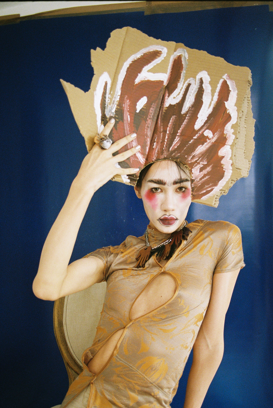 How this collection was born was a mix of all my thoughts, my different states of mind and feelings. I refused to have a mood board or write a text, instead, I just started sewing directly with materials that would catch my eye or fabrics I would be drawn to. So at the time, I was feeling like wearing earth tones, and that’s what I projected on the pieces. I was feeling motivated, but blue at times, self-destructive, and somehow all of this got shown on some of the garments.
