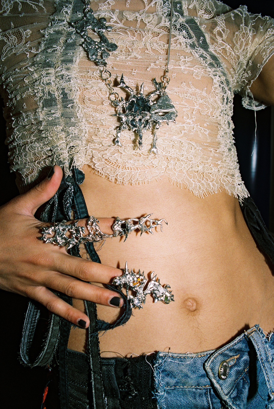 “Whilst in fashion school, they taught me I had to follow a strict structure before starting a collection, there was no space for improv or randomness. This theory stuck with me and held me back from designing what I wanted to design, drawing what I wanted to draw, from sewing how I wanted to sew. Once I arrived in Berlin I discovered that fashion can be very diverse, in the ways it’s done,
