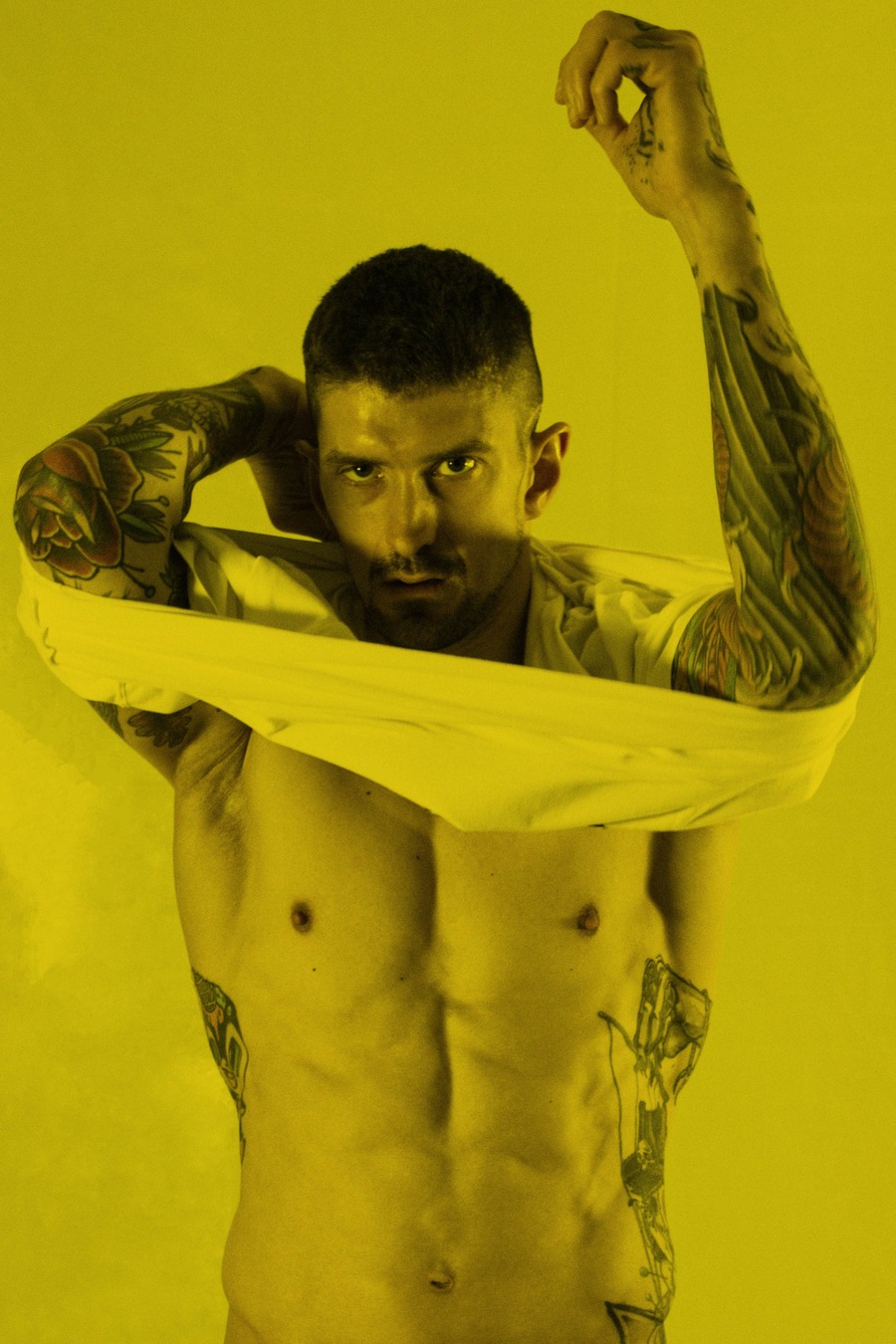 Benjamin Edeline, known widely as the artistic alter ego behind the renowned online label “MENLAYERS”, skillfully captures the essence of gay iconography through his captivating photography. His work is thoughtfully influenced by the vibrant queer graphics from the electric eras of the 1970s, 80s, and 90s. Benjamin shares, “I have been an insatiably observant individual since my childhood, and the human body has always fascinated me greatly—its gestures, movements, articulations, and the duality of its power and vulnerability. My love for observation has kindled a profound interest in creating photographic series or sequences that delve into the nuances of movement or weave a compelling narrative.”
