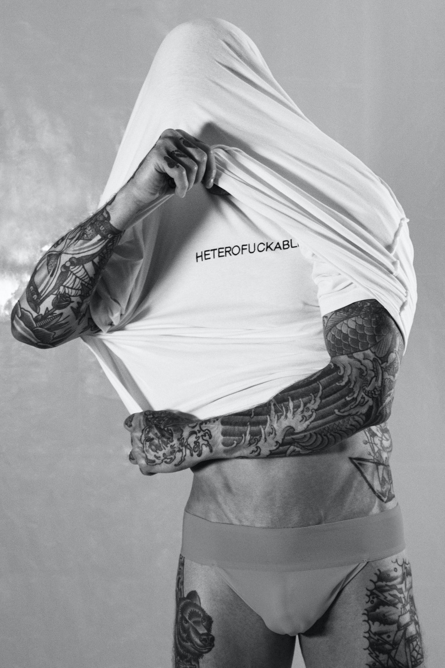 As the blank page (“carte blanche”) transforms effortlessly into a breathtaking work of art, so too does the white T-shirt metamorphose into a canvas. Wearing our iconic statements such as KURT, ESSENTIALLY UNLOVEABLE, PUT ME ON YOUR INSTASTORY, and HETEROFUCKABLE, embrace the ability to portray your unique and personal message.