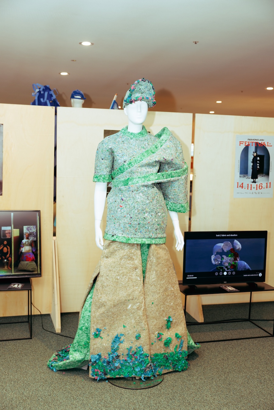 The opening night showcased the New Fashion Narratives exhibition at Bureau Europa, marking the festival’s commencement in style. Through this exhibition, a talented group of four fashion makers, who had collaborated during a residency week in Maastricht, presented a curatorial concept centred on collective movements and the intersection of fashion, activism, and communal practices. Their work, embodying diverse creative expressions, challenged traditional fashion narratives and engaged audiences in a broader conversation about social issues.