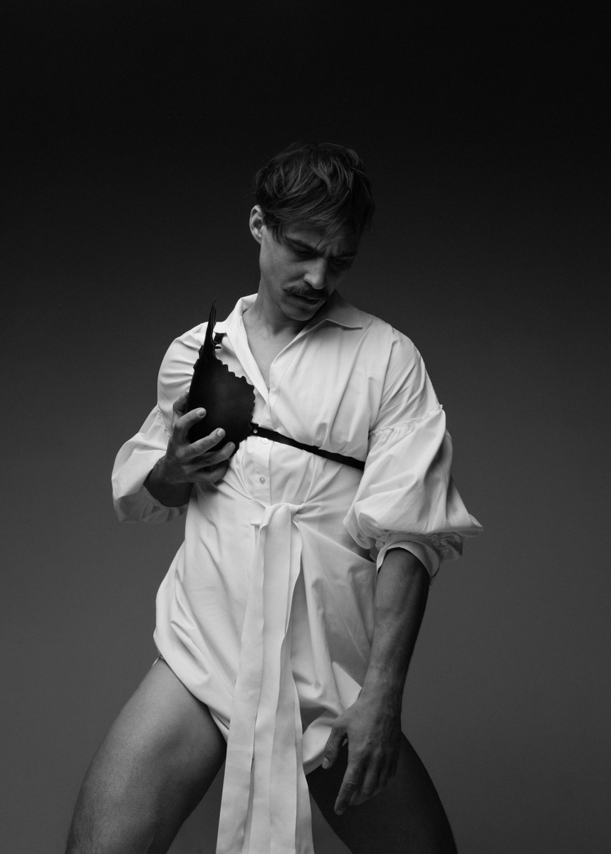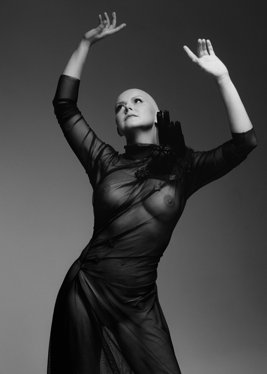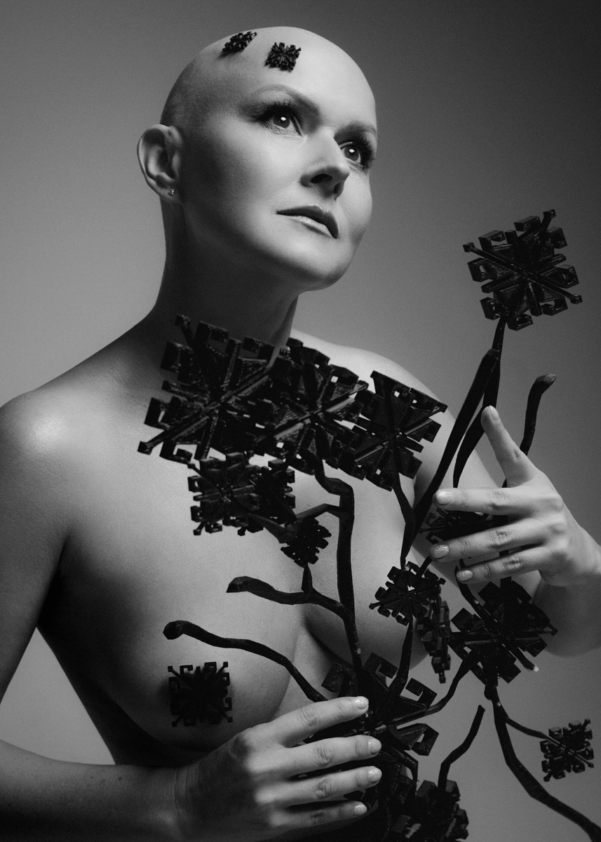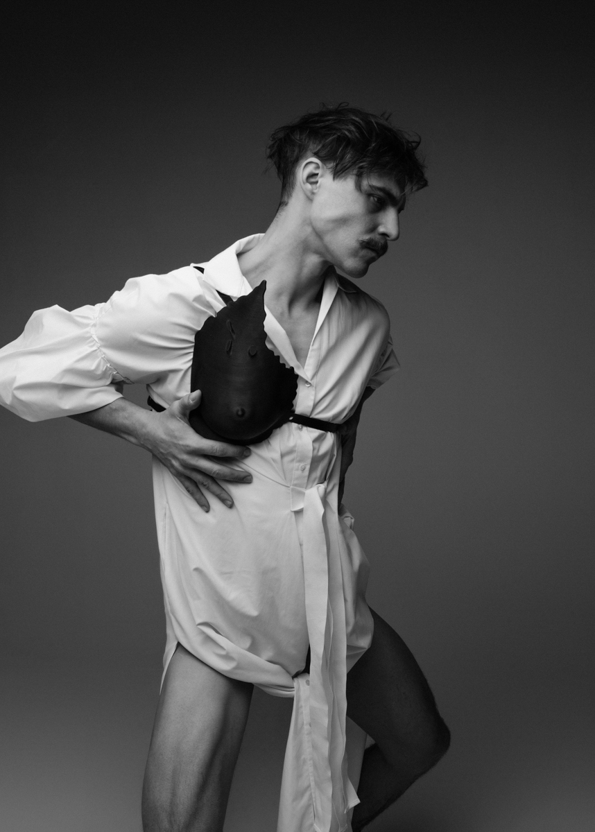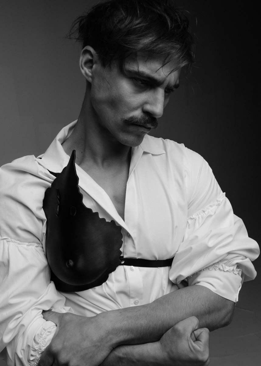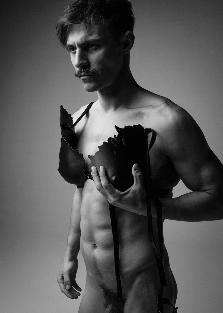 Powerful elements of Ukrainian symbols exist in our DNA, they live and grow out of our skin. Corsets in the form of a woman’s breast were scanned from the designer’s figure, printed on a 3D printer and decorated with additional elements – a peculiar response to the prehistoric times of matriarchy and the cult of the ancient Goddess. When the wild tribes returned “to the smoke” – “to the home”, to the family fireplace, being guarded by the woman Beregynya – the Goddess, who was eventually transformed into a God. Now sadly, families are divided, but they have left their soul particles in each other.
