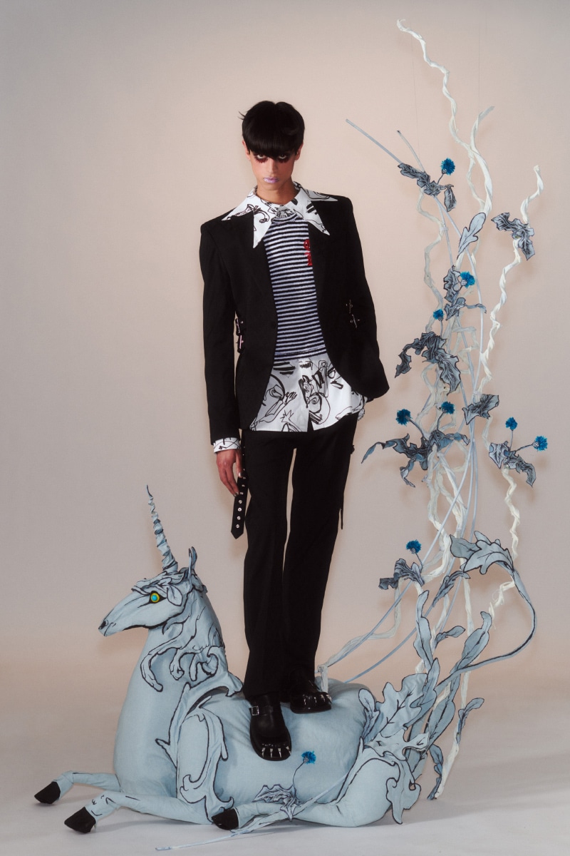 #Lookbook – Charles Jeffrey LOVERBOY‘s Pre-Spring 2024 collection, STATANT PASSANT RAMPANT, blends medieval British aesthetics with an avant-garde sensibility. The collection reinterprets heraldic symbology through new illustrations by Charles Jeffrey, featuring mischievous unicorns, majestic eagles, and fierce lions.