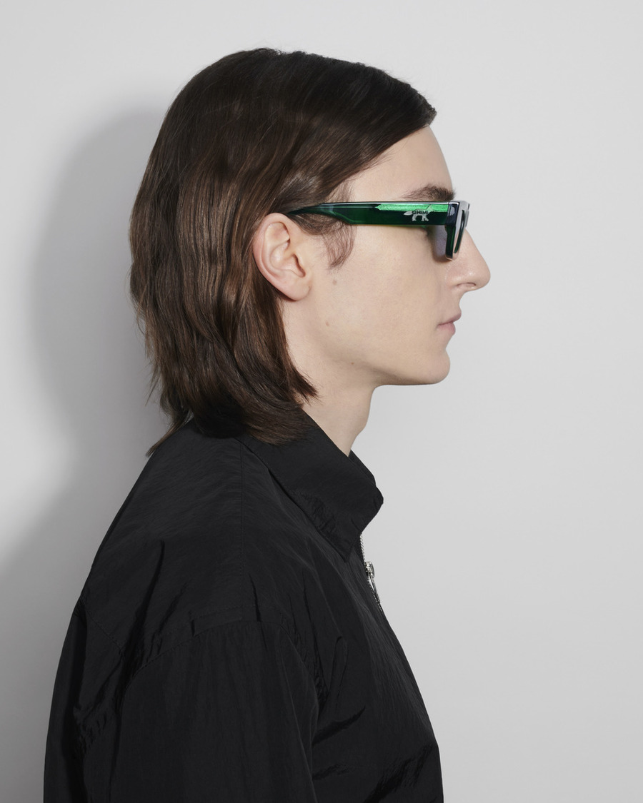 The palette parades honey-hued orange, lush green and sky blue-all signature colours of the French-Japanese brand-while Chimi’s Scandinavian minimalist-at-heart design cues dene the silhouettes: Square is a structural frame with an emphasis on architectural angles, expertly handcrafted in Italian acetate and complemented by gradient lenses. The racing-infused Shield is a frameless design featuring mesmeric mirrored monolines that allows for an expansive vision, handcrafted with a lightweight stainless steel core and acetate temples.