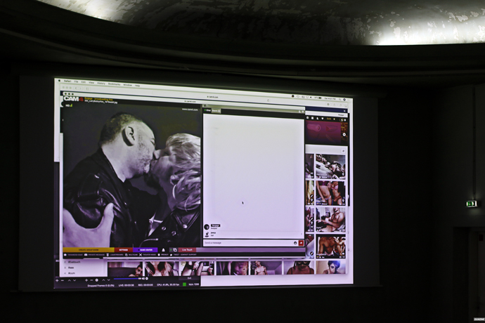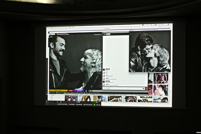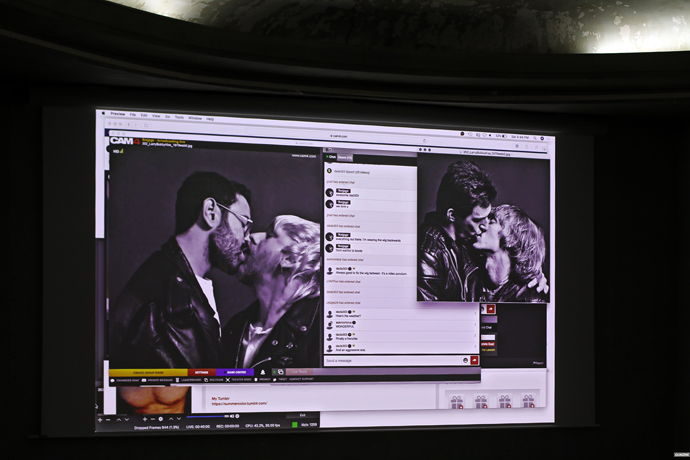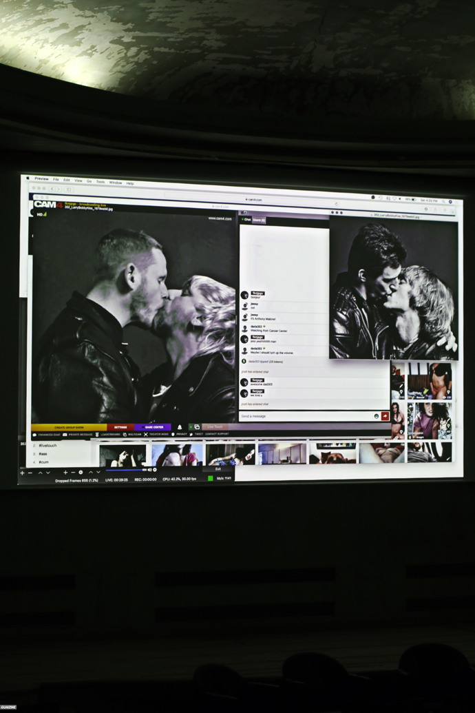 #PerformanceReview: Christopher Clary is an artist exploring queer communication. He restaged an episode of his performance series FkN JPGs. The piece took place at the Palais de Tokyo and was streamed online to an adult website. Both audiences were able to chat with ‘Larry’ and ‘Bobby’ via the platform. After the performance Clary stayed online to talk about the series and answer questions.