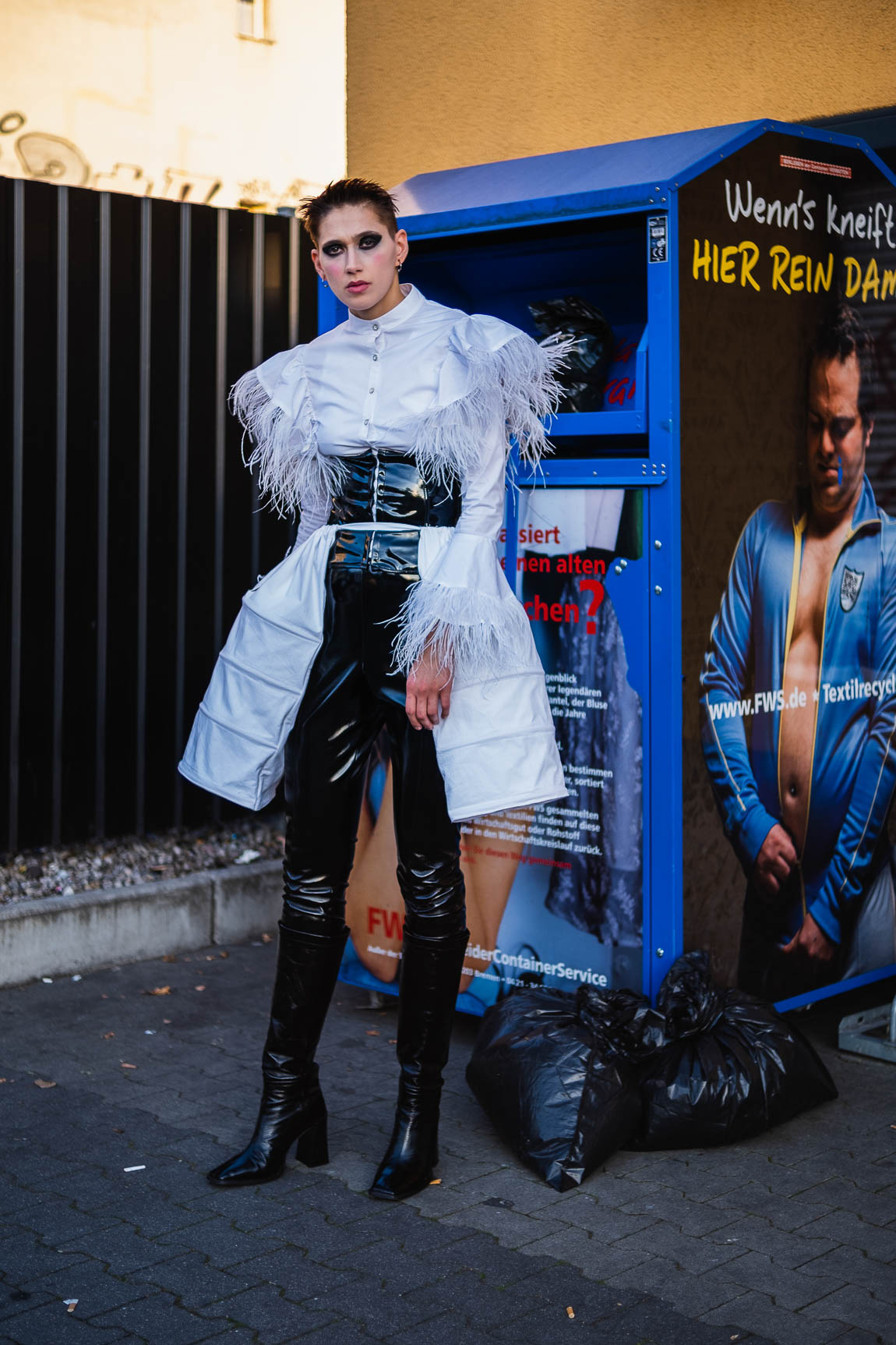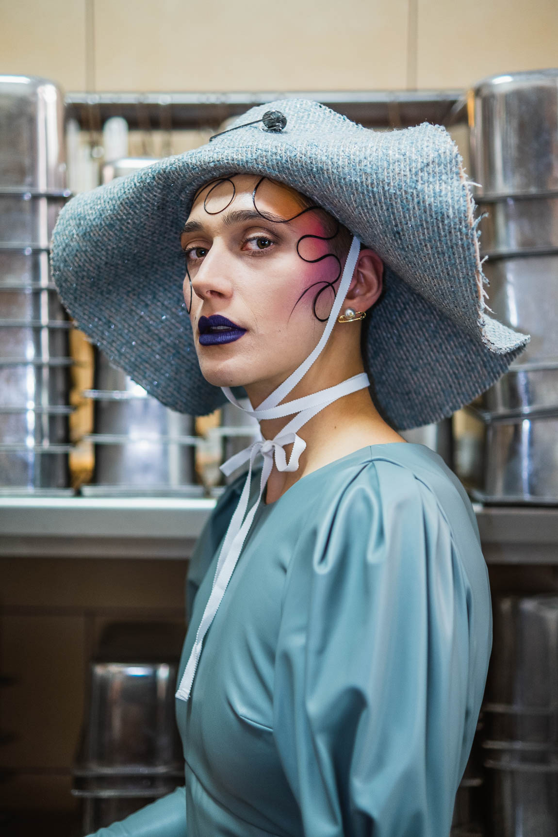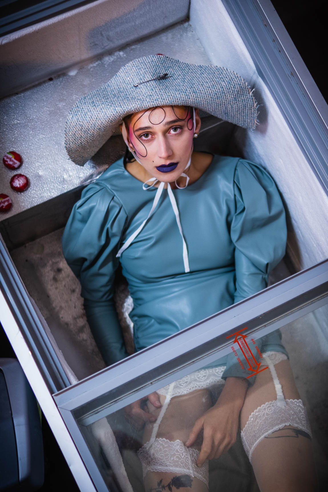 A KALTBLUT exclusive. Photography by Julia Joppien. Model is Caroline Schechtner signed at Let It Go. Art direction by Ekaterina Samorukova. Make up by Tomislav Hvasta. Styling by Ekaterina Samorukova. Fashion Brands are Dilara Findikoglu, Versace, Vivienne Westwood, Ninamounah, Chloé, Maison Margiela, Alexander McQueen, Karl Lagerfeld, Boo Pala London, Sendra, Triumph.