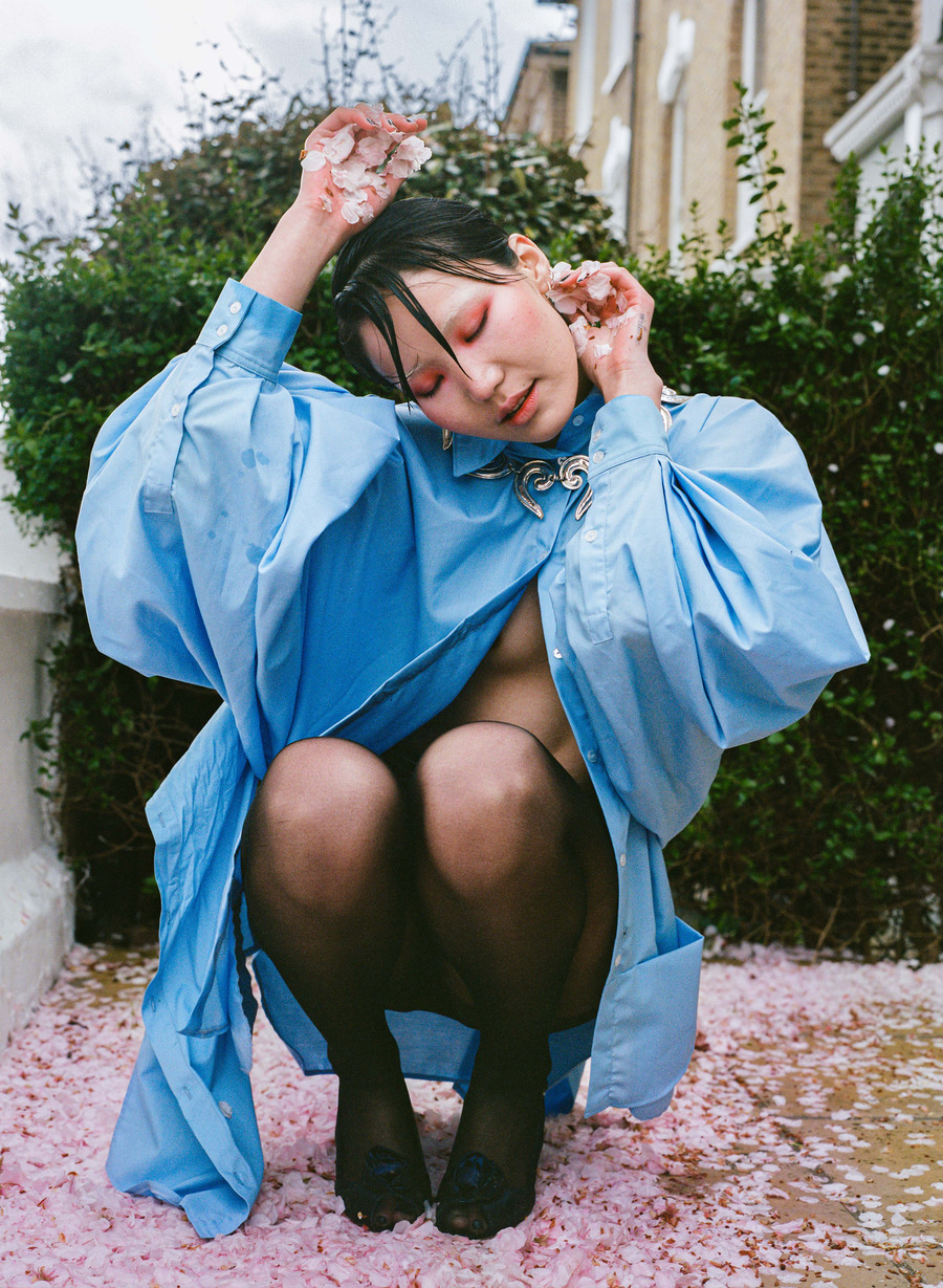 A KALTBLUT exclusive editorial. Photography by Alex Radota. The model is Anu Tumenjargal. Styling by In Yoon. Makeup by Roo Gehring. Hair by Rati. This story draws inspiration from the vibrant streets of North London, capturing the essence of urban life on film. Contemporary fashion and nostalgic charm fusion take centre stage against iconic backdrops such as a local funfair, vintage cars, and fallen cherry blossoms. Each shot encapsulates the city’s spirit, celebrating its dynamic energy and timeless allure.