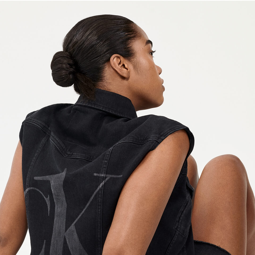 The new fashion collections and fragrance mark the next chapter of the iconic CK ONE story. Jeans and underwear include staple wardrobe pieces with genderless appeal. The CK ONE underwear collection features graphic prints with bold all-over monogram logos, repeating roses and new colorwaves in key cotton and micro fiber styles. Camo prints, color-blocked styles with a ribbed, sock-inspired waistband and a Recycle capsule featuring underwear and t-shirts made from recycled plastic water bottles will also drop later this season. The CK ONE jeans collection includes logo tees, graphic hoodies and timeless denim silhouettes such as oversized trucker jackets, denim vests, and mom and dad jeans, as well as skirts and shorts with raw hem cuts.