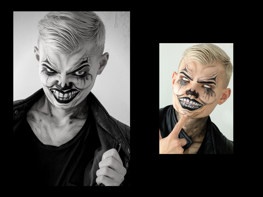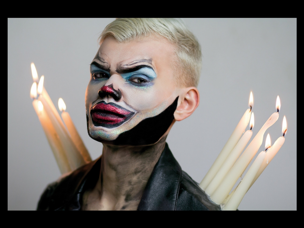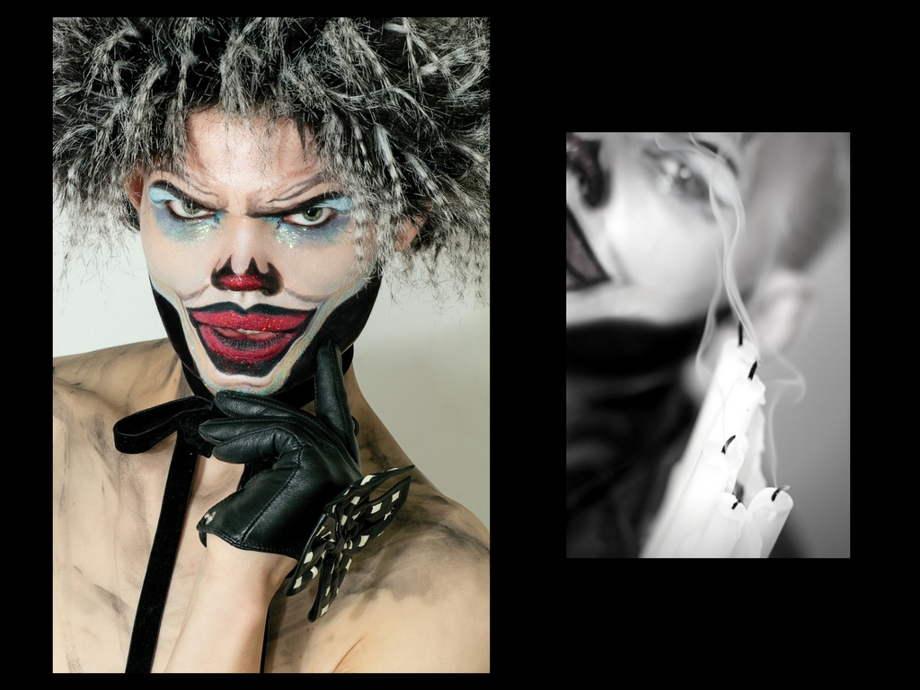 A Halloween special and KALTBLUT exclusive beauty editorial. Photography, styling and make up done by Sabine Grodd. Clown Town is starring model is Tim Mann. “Creating an expressive impression to the observer, by capturing a person´s or an object´s uniqueness on a picture, is my passion. To emphasize a person´s soul, reflected by it´s individual charisma, is my inspiration.” says Sabine Grodd.