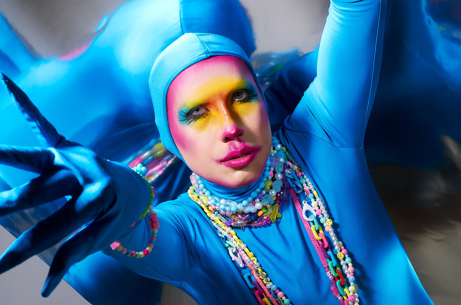 A KALTBLUT exclusive. CMYK is a beauty editorial featuring the talented Mexican drag queen Judas Love photographed by Mario Iru. It is a series of photographs that seek to be an expression of melancholy; of the strange sensation that it produces in us when it arrives to stay, represented in the form of amorphous and colourful reflections around us, like beautiful memories, and full of colour that, like smoke or a fluctuating and amorphous wave, haunt our heads, causing us to yearn.