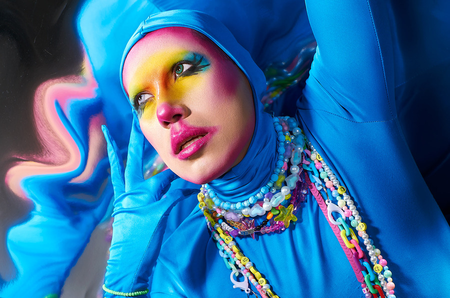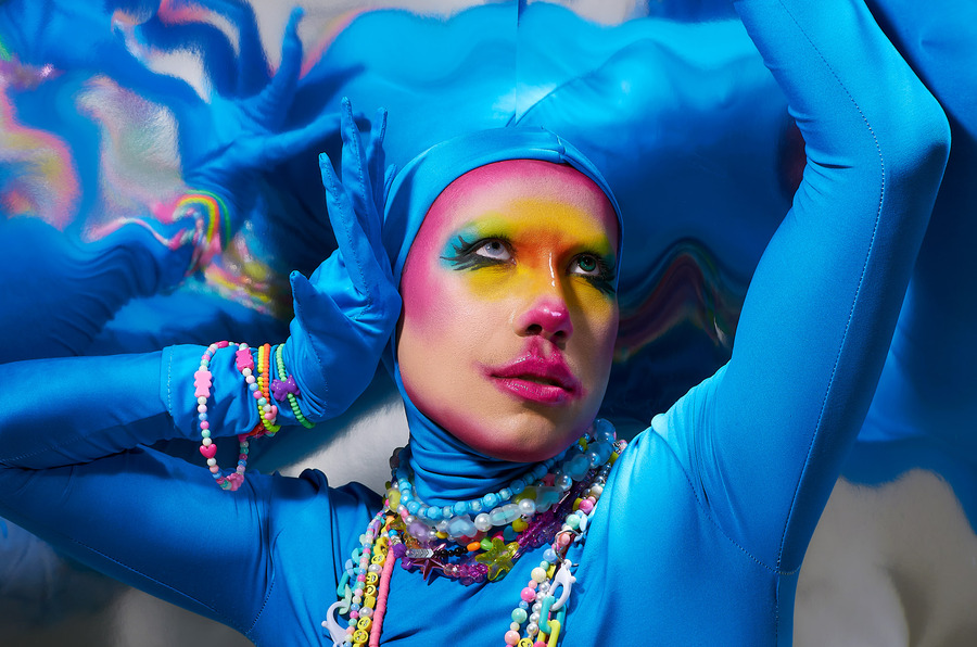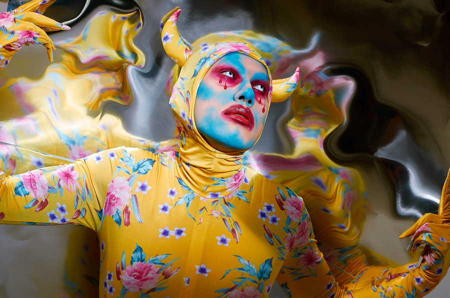 A KALTBLUT exclusive. CMYK is a beauty editorial featuring the talented Mexican drag queen Judas Love photographed by Mario Iru. It is a series of photographs that seek to be an expression of melancholy; of the strange sensation that it produces in us when it arrives to stay, represented in the form of amorphous and colourful reflections around us, like beautiful memories, and full of colour that, like smoke or a fluctuating and amorphous wave, haunt our heads, causing us to yearn.