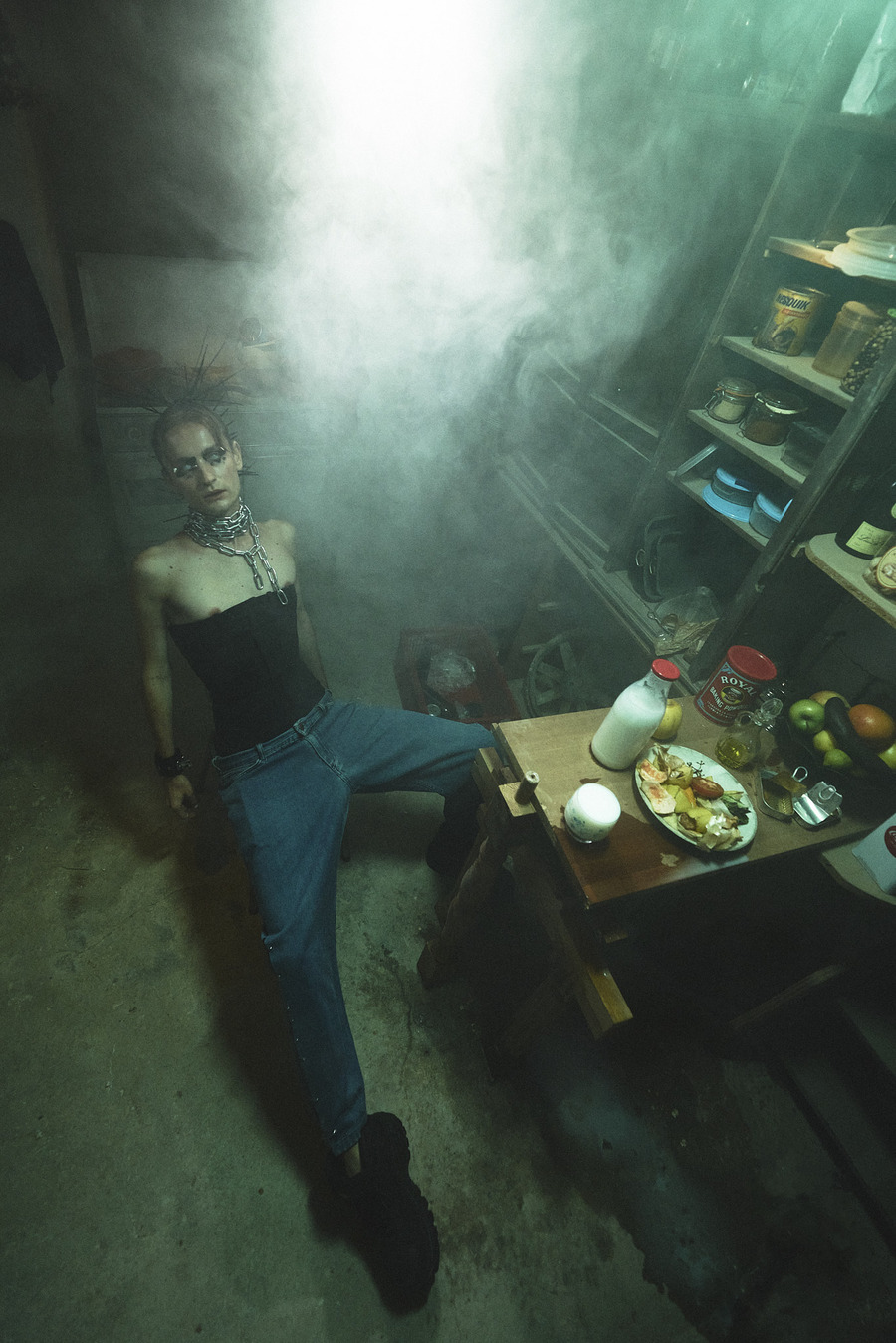 A KALTBLUT exclusive. Creative direction by Paula Viñó. Photography by Alejandro Rivera. Models are Alexanther Cruz, David Bumat, Dario de Maturana, and Eva Gatox. Everything indicates that the system is collapsing. Society has turned its back to nature and is living in a fictitious and artificial world: blind, alienated, with imposed dreams, wanting to give a false image of itself; believing itself to be free, it is abducted by consumption, hypnotised by big data… dehumanised.