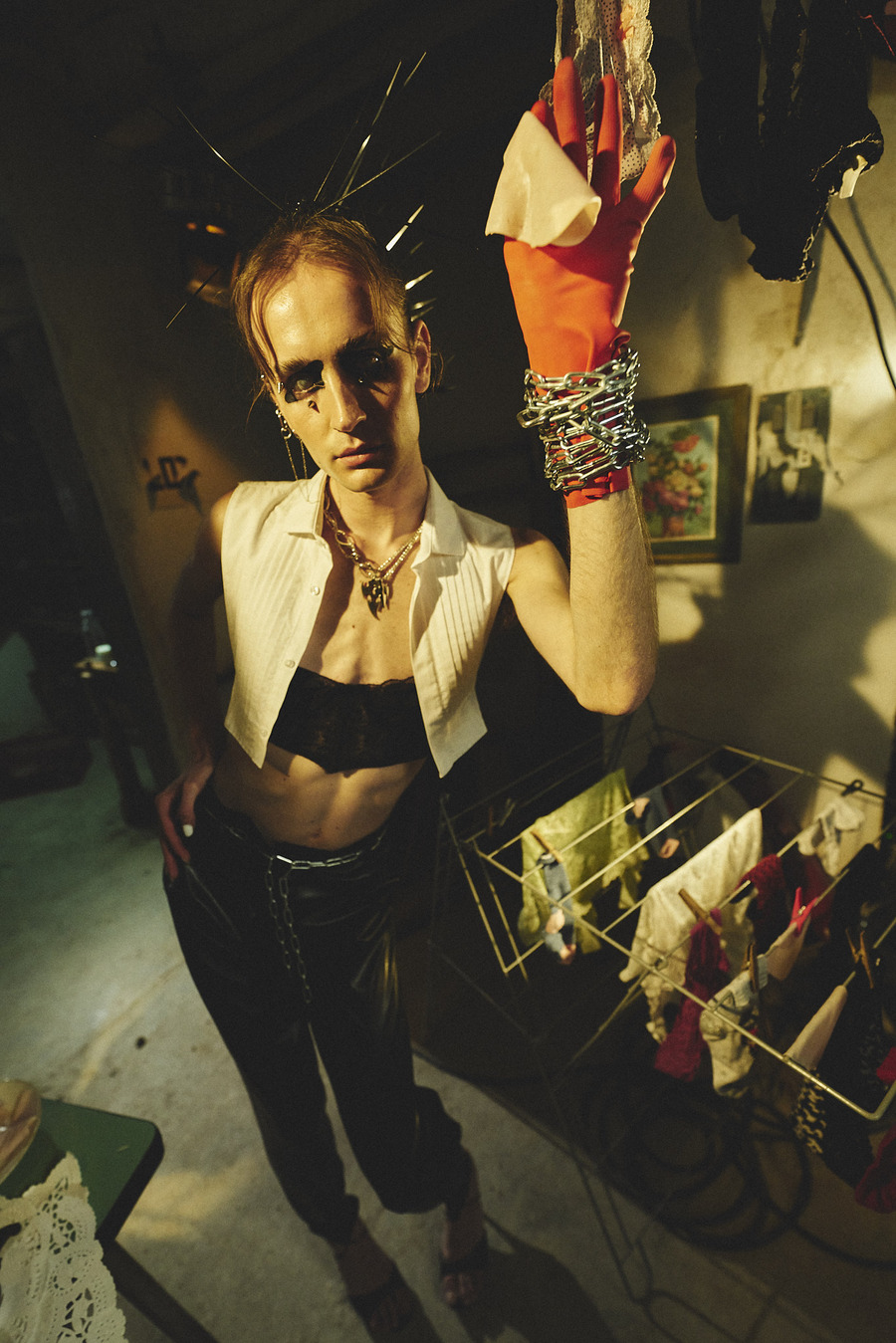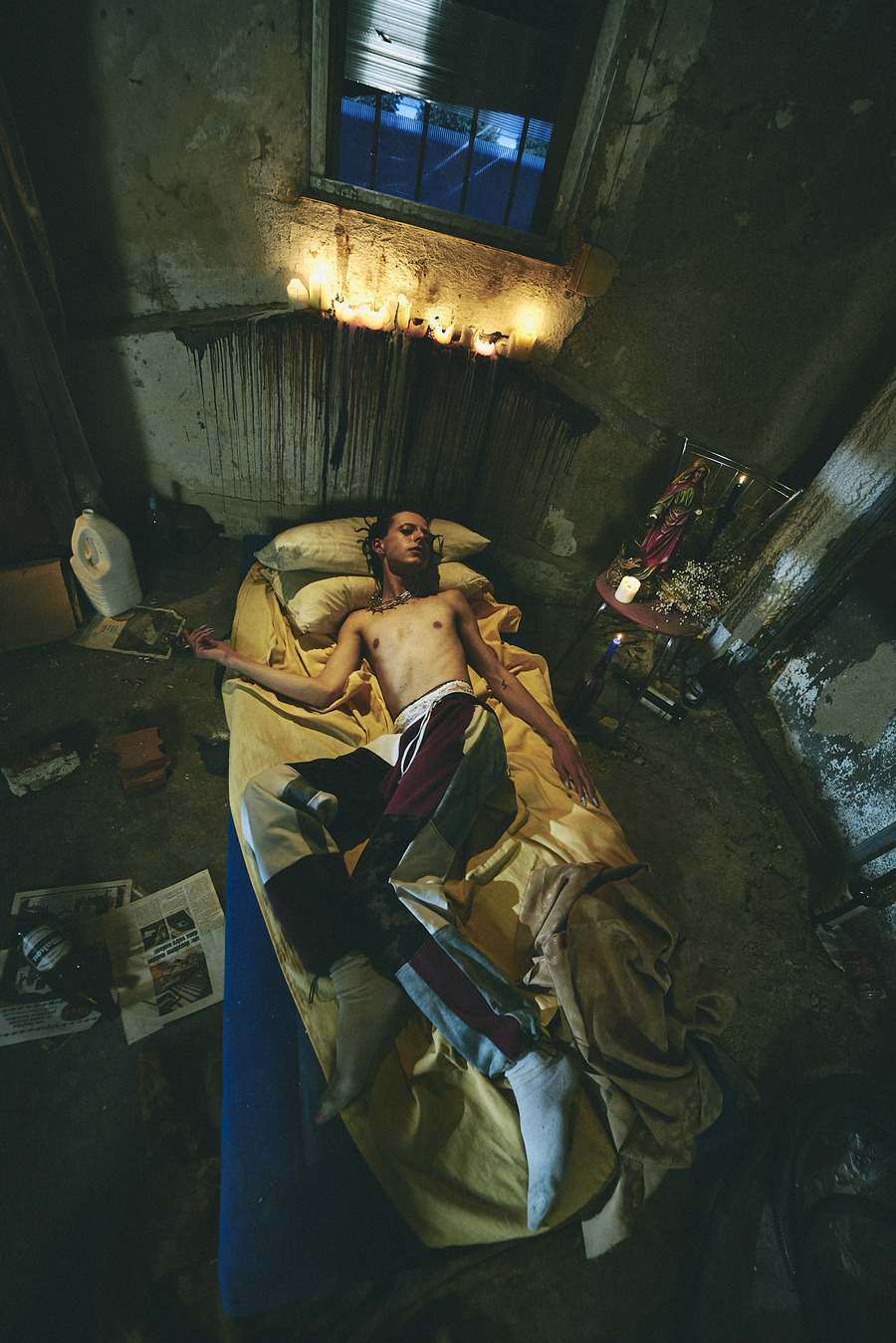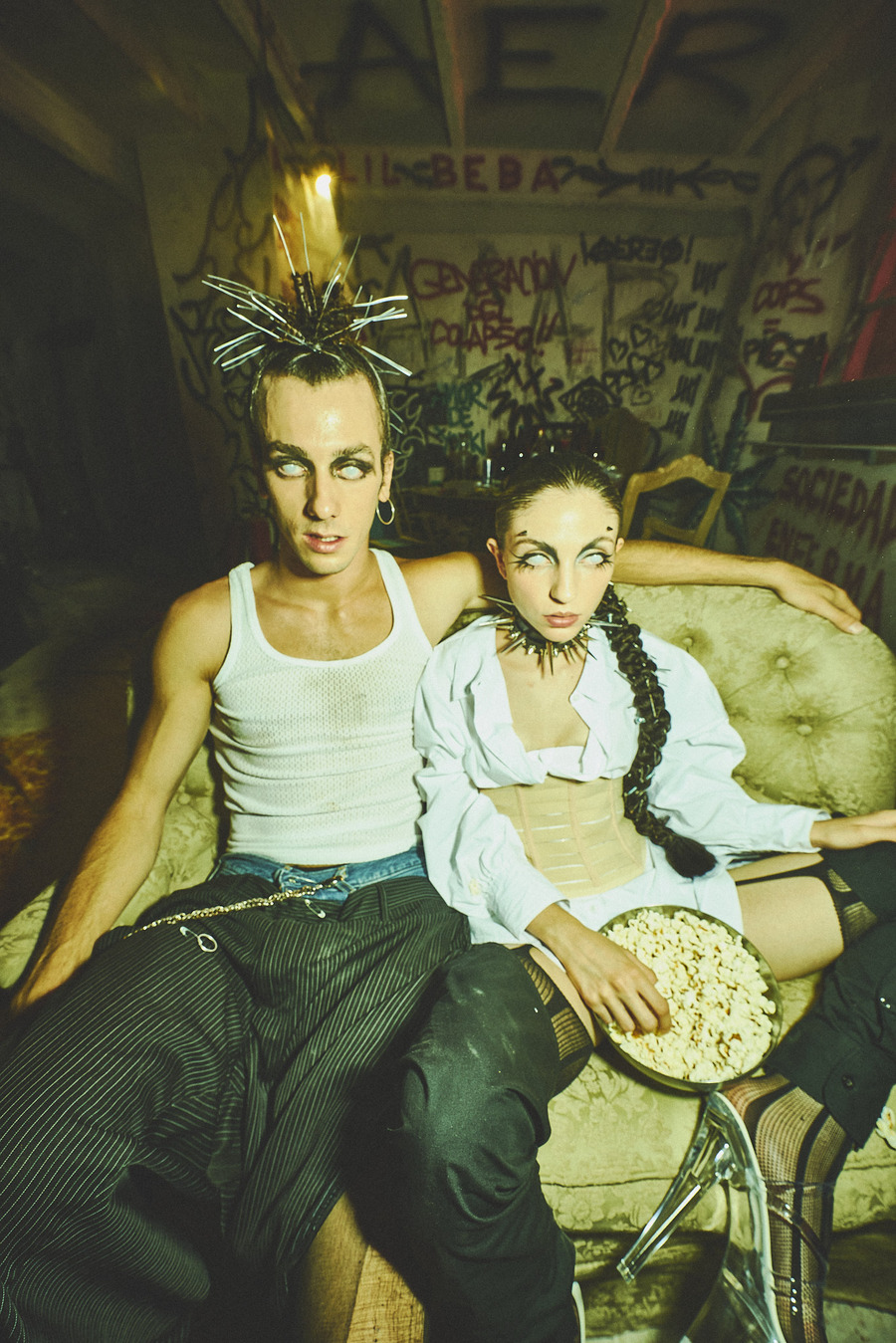A KALTBLUT exclusive. Creative direction by Paula Viñó. Photography by Alejandro Rivera. Models are Alexanther Cruz, David Bumat, Dario de Maturana, and Eva Gatox. Everything indicates that the system is collapsing. Society has turned its back to nature and is living in a fictitious and artificial world: blind, alienated, with imposed dreams, wanting to give a false image of itself; believing itself to be free, it is abducted by consumption, hypnotised by big data… dehumanised.