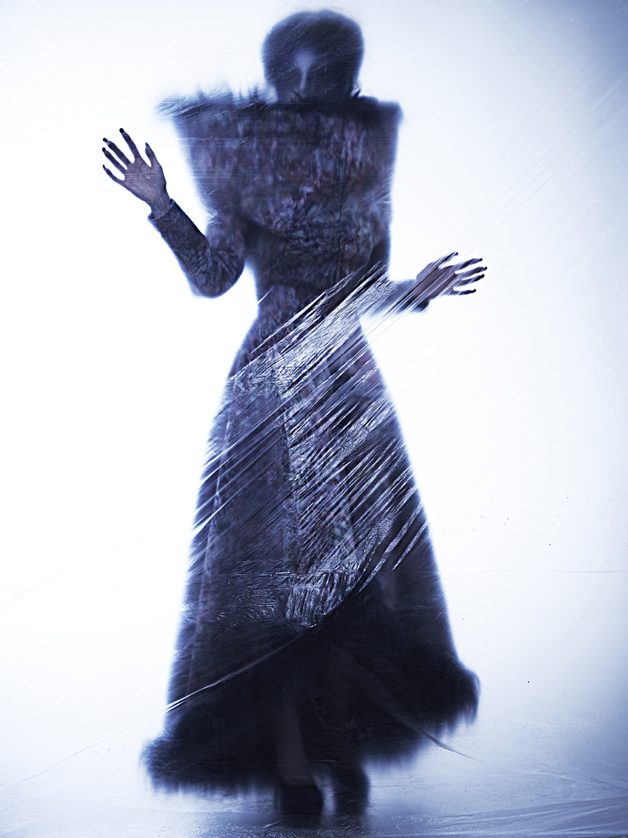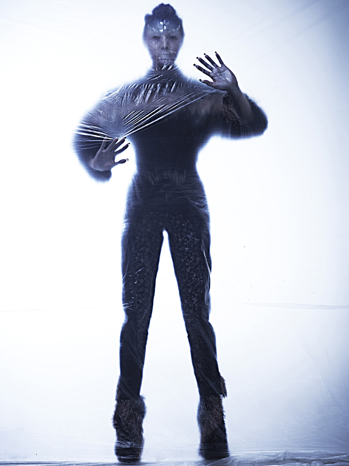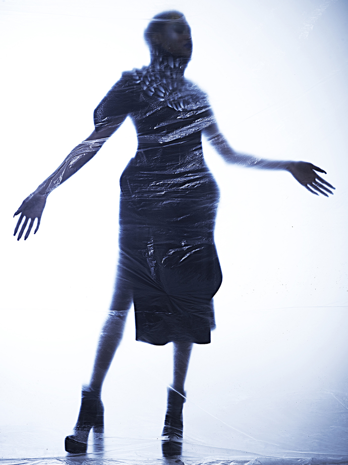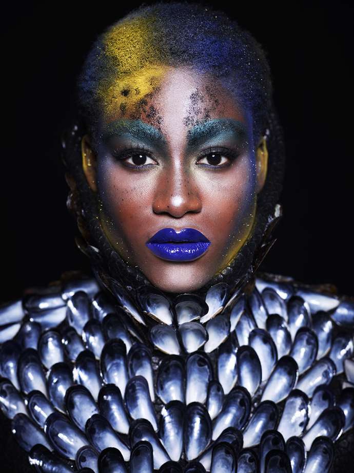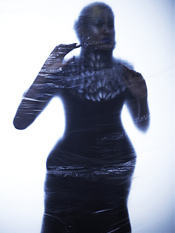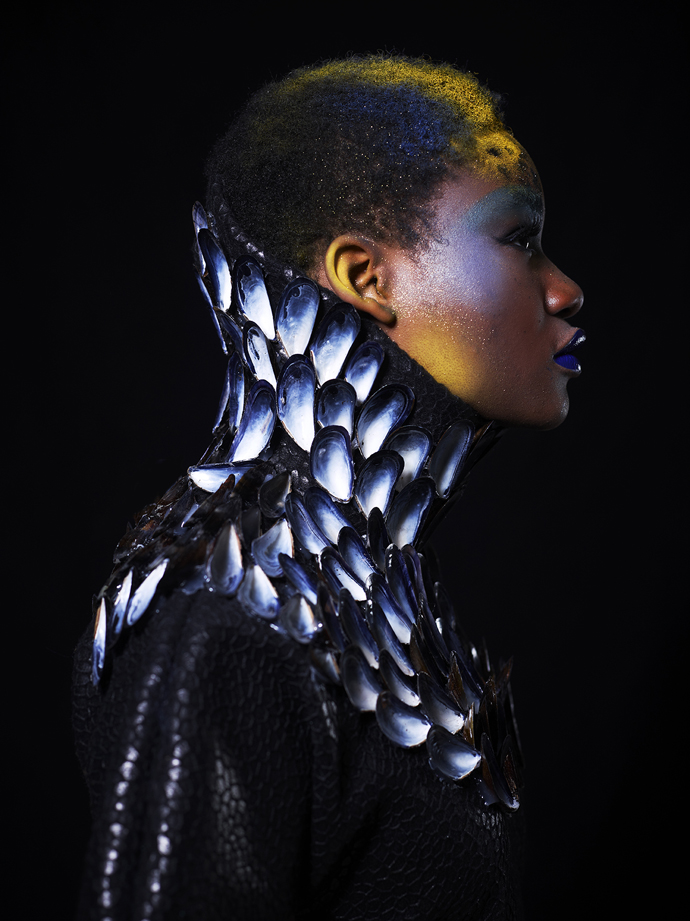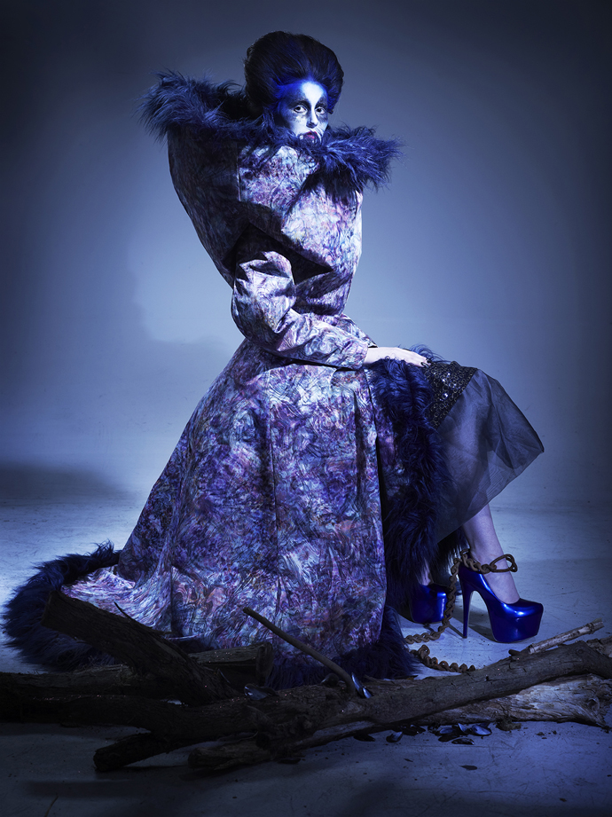 “Clossus , is my first collection is inspired from the poems of American poet Sylvia Plath, the colossus is about what happens when life becomes so still, when we are driven to do the same thing every single day. The photos shot by Frank Dursthoff starts in series like photos, it was his first cooperation with a fashion student, he was able to bring the collection to life with a very talented eye for colour and form. Aquatic nocturne is based on the same poem by Sylvia, a mesmerizing shade of blues and Mystic Violet was selected with textiles that imitate with alien- and animal-like markings.