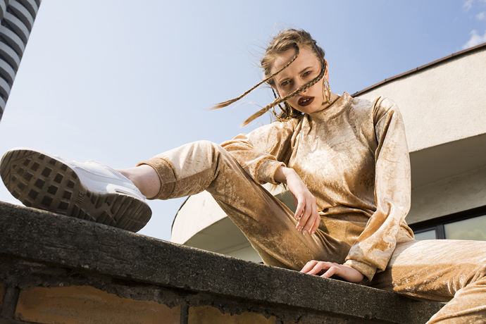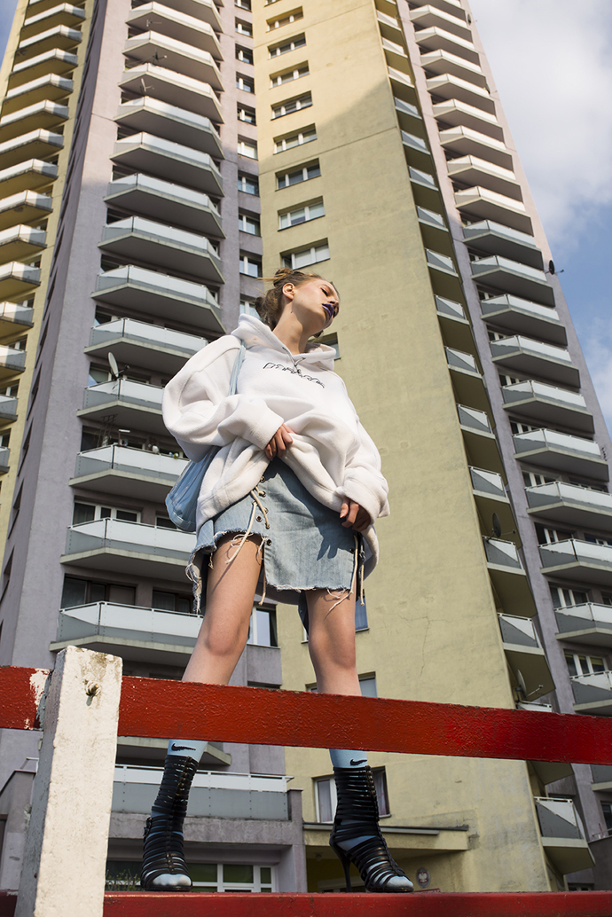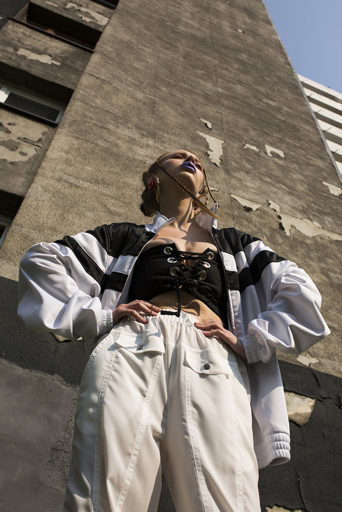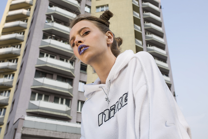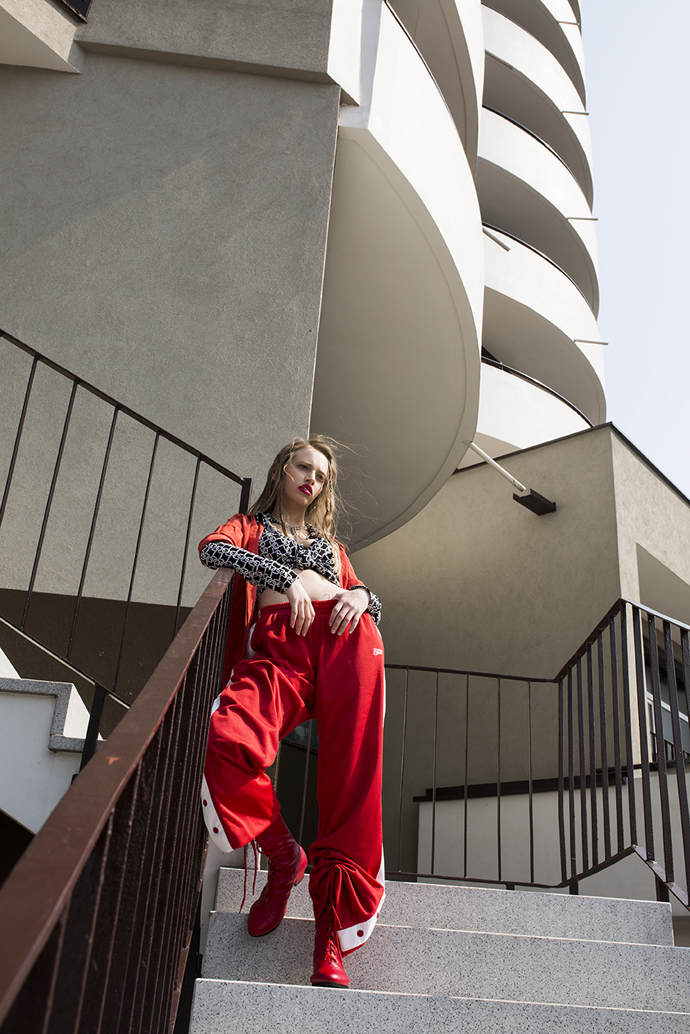 A KALTBLUT exclusive womenswear editorial. Photography by Helena Bromboszcz. Model is Idalia Baryła. Styled by Kasia Danioł using Prada, Umbro, Bershka, H&M, Nike, Fila, Reiss, Zara Amongst others. Make up by Karolina Siewierska Paulewicz. Hair by Wioletta Pawliniak
