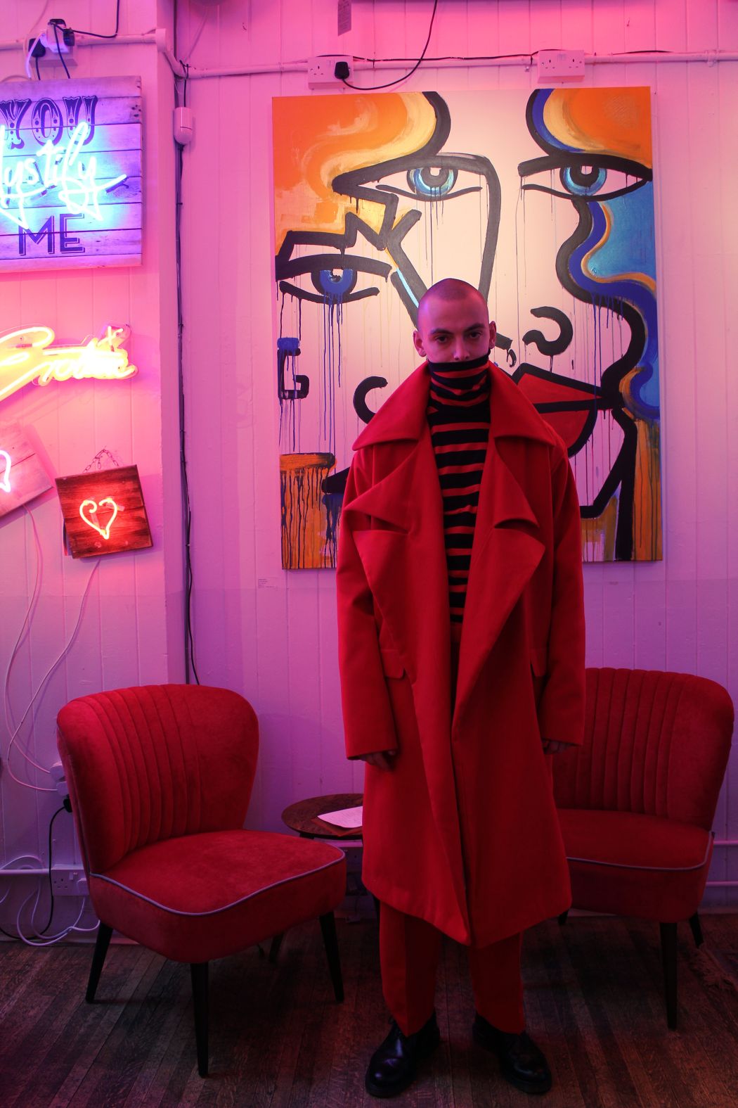 A KALTBLUT exclusive menswear editorial by Thuy Phamova. A freelance portrait and fashion photographer originally from Czech Republic and now based in London, UK. Model is Oscar @ Nevs Models. All fashion by Marko Feher. “I enjoy capturing moments and beauty around me through my vision. Apart from shooting tests, portraits, beauty or fashion, I enjoy capturing architecture and landscape while travelling. Alongside of my photography I started to run y blog Bridge of Memories where I share and document my lifestyle content. Photography for me is capturing the moments that are gone and hard to reproduce. For this last editorial shoot, I have worked with a young student designer Marko Feher. The theme behind his last collection is called “Obsession” and is inspired by domestic violence in which he showcase through red colours and oversize cuts.”