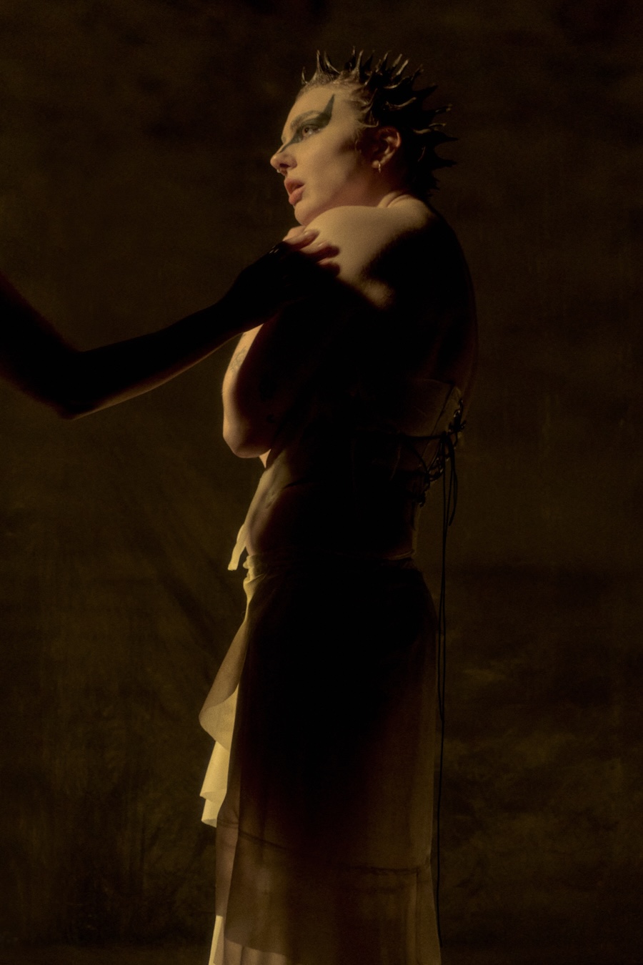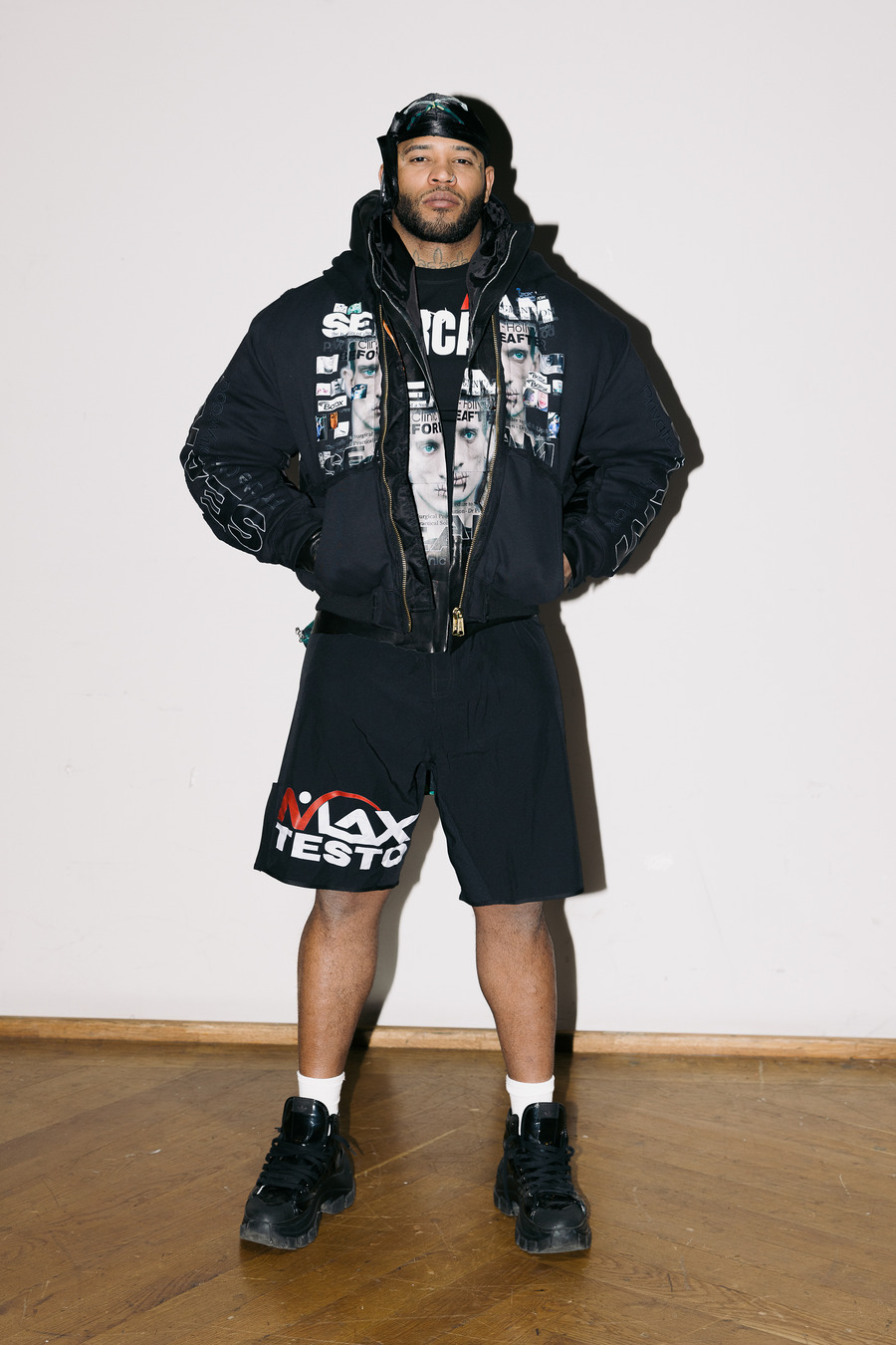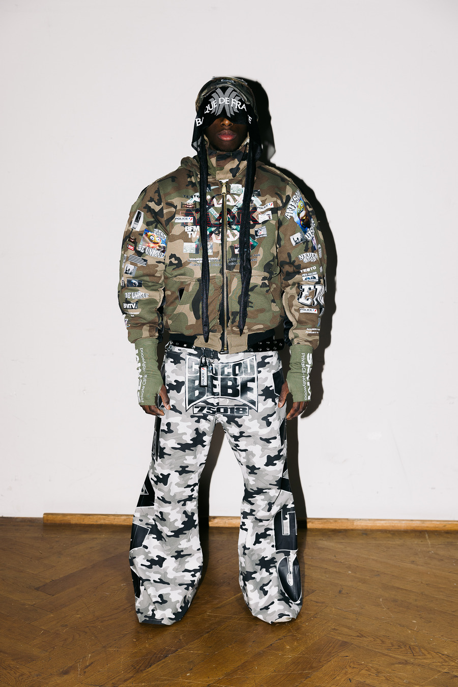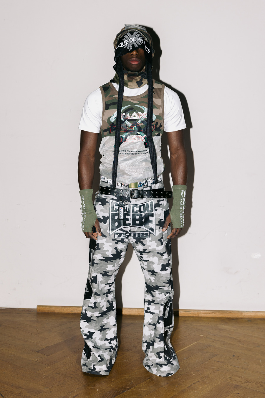 TESTOSTERONE, a title that resonates with the primal essence of power, aggression, and vitality, serves as a thematic exploration of masculinity in the Fall/Winter 2025 menswear collection. Drawing inspiration from the radical artistry of Pyotr Pavlensky, whose bold expressionism is championed by A/POLITICAL, both Coucou Bebe and Pavlensky conjure a hallucinatory experience that challenges perceptions of reality.