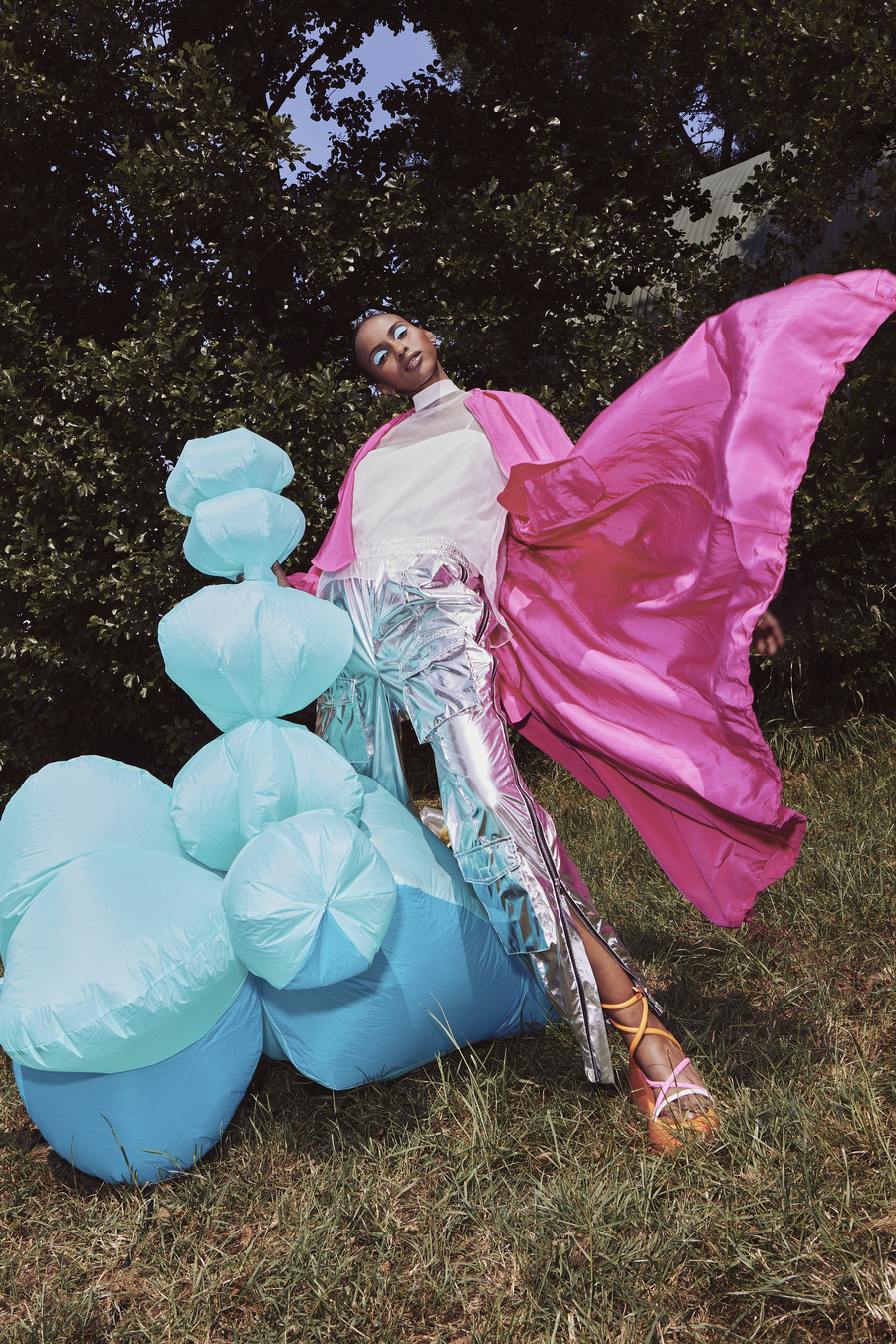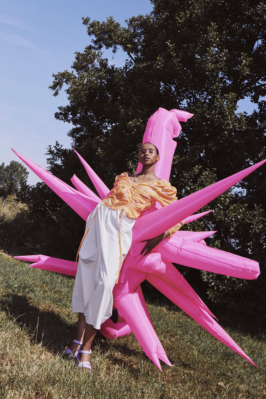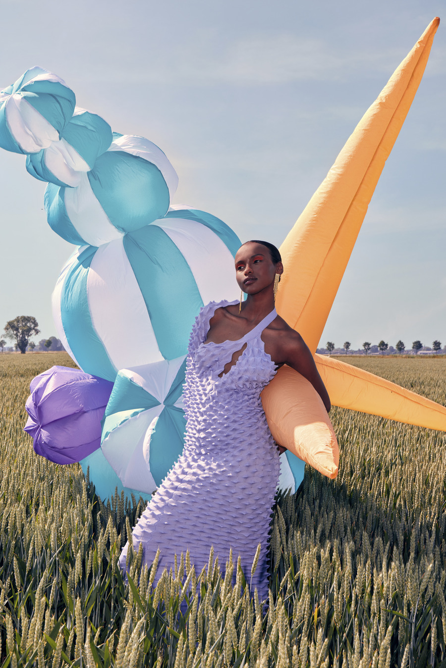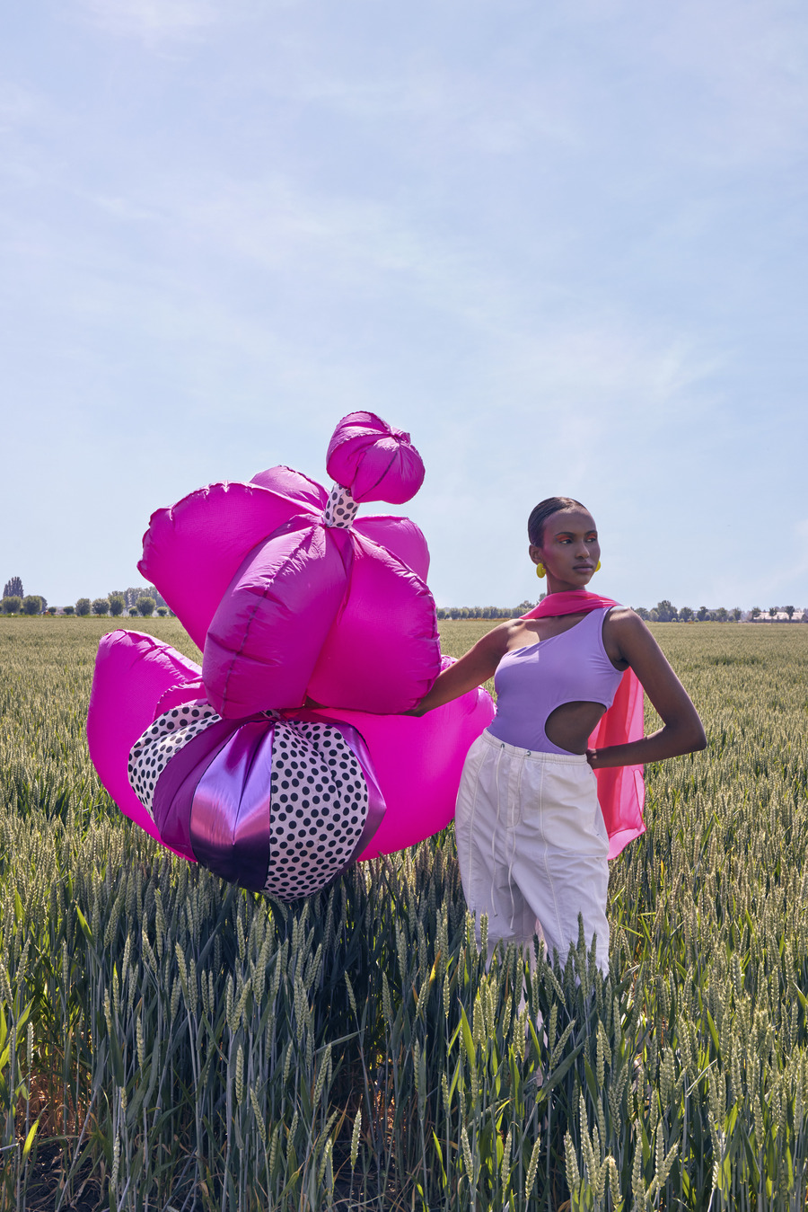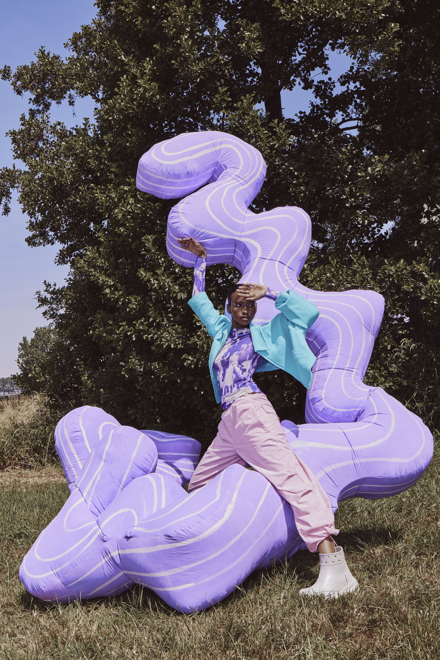 A KALTBLUT exclusive. Photography by Julie Vielvoije. Styling by Bernadette van Wijlen. The model is Sabarin signed at APL Models. Make-up and hair by Beau Hoogerwerf. Inflatables designed by Lidi Bus. Fashion Brands used are Tommy Jeans, Rodebjer, Helmidge, Chet Lo, Cardio Bunny, Cesare Gaspari, Ellesse, Polo Ralph Lauren, Lascana, Gestuz, Call It Spring, Bronx, Gina Tricot, Superdry and Crocs.