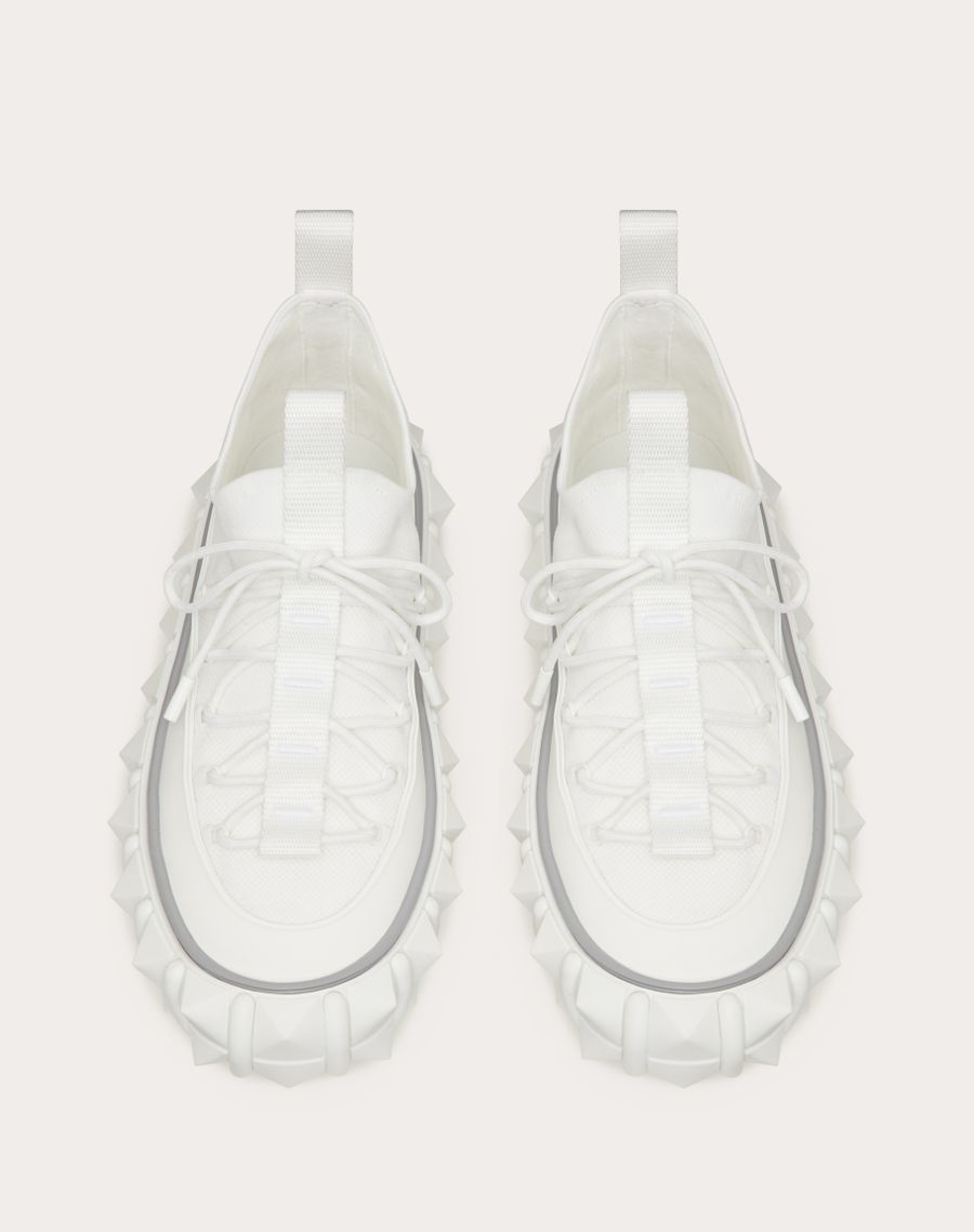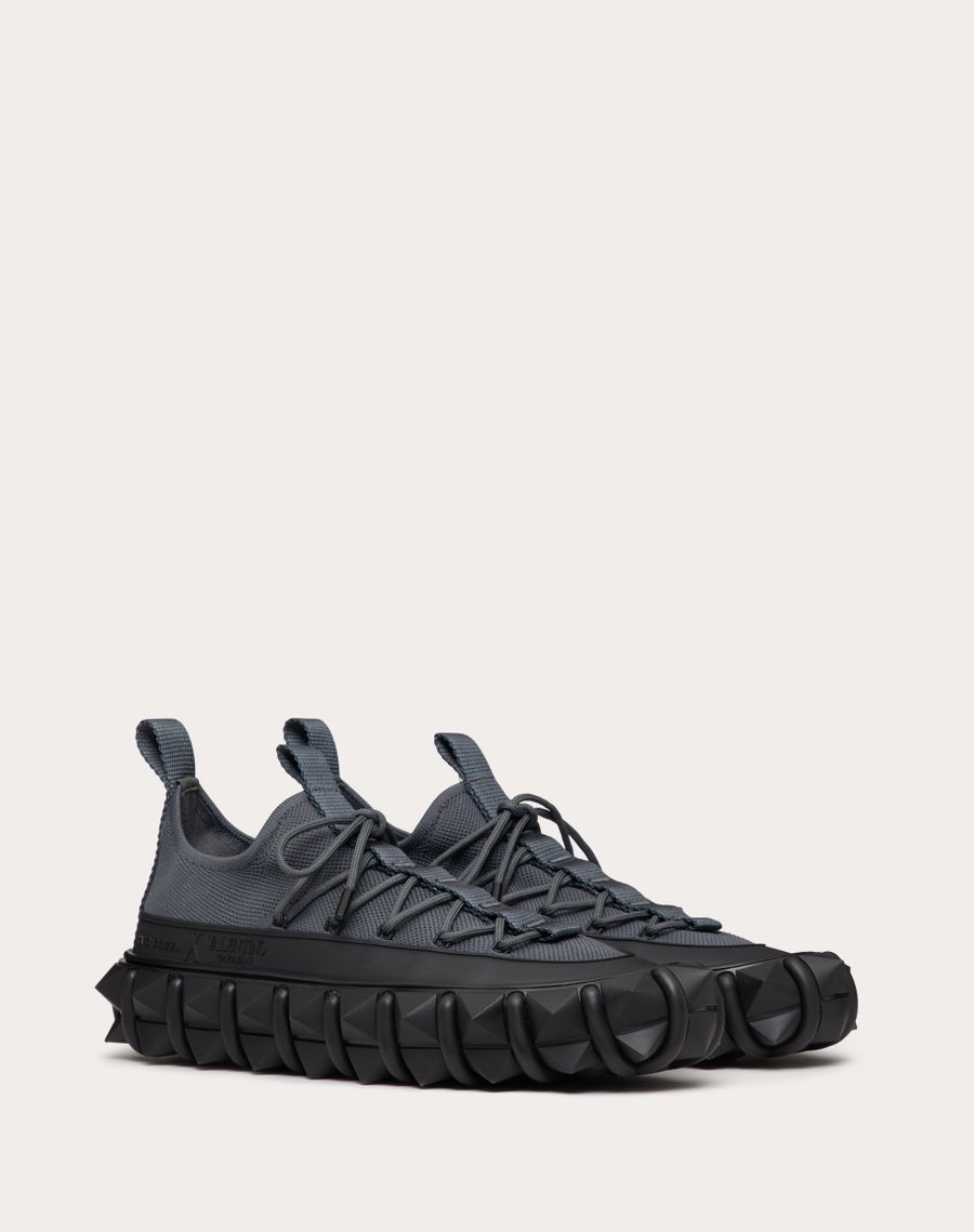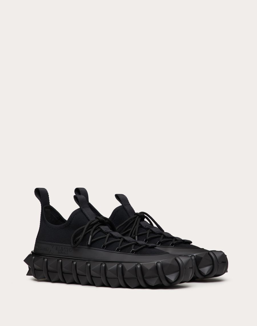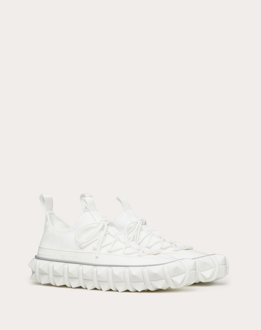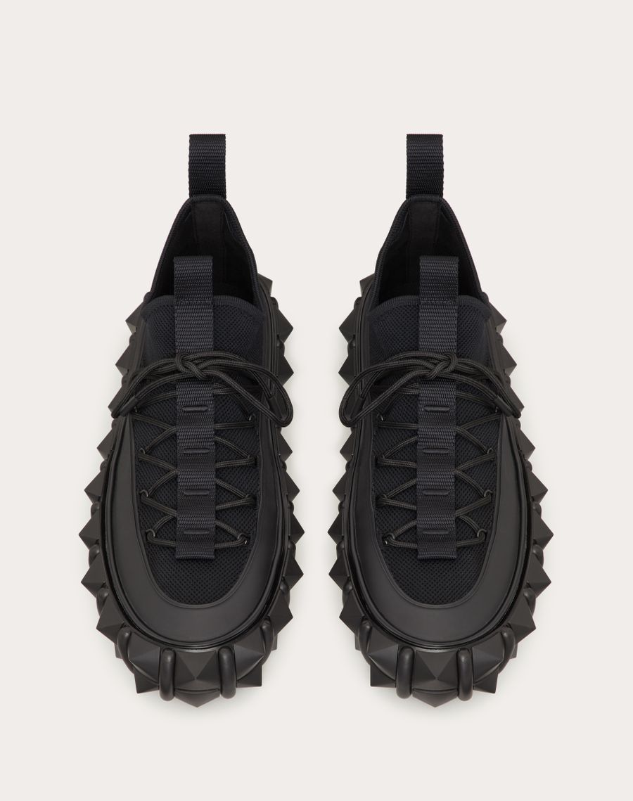 Pierpaolo Piccioli and Craig Green have given a unique interpretation that sees the stud come into a new guise: a sneaker embraced by a sculptural sole made of maxi Rockstud, where the stud is both parts of the design aesthetic and functionality.