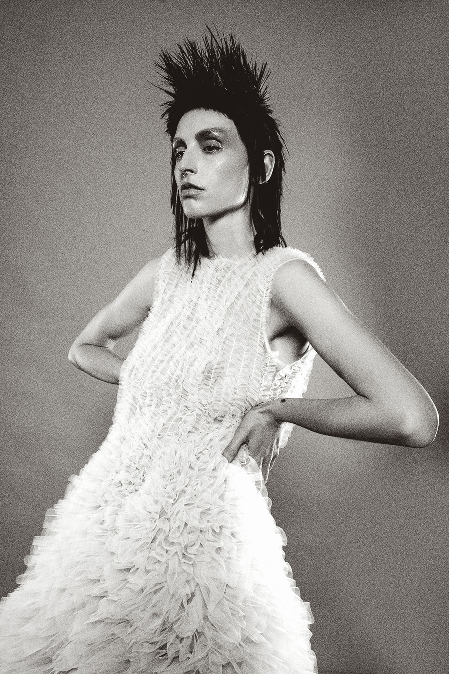 A KALTBLUT exclusive editorial. The model is Friederike Engel. Photography by Alain Egues. Hair & Makeup by Asier Aguiriano. Styling by Elena Shylina using Ganni, Ugg, Self-Portrait, Seven, Balenciaga, Marina Hoermanseder, Jacquemus, Wolford The Attico, Saint Laurent, Bibibachtadze Narciso Rodriguez, Toteme.