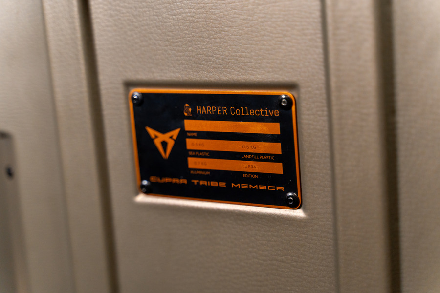 Created from a shared vision of design and innovation, CUPRA incorporates signature finishing materials, including the iconic Century Bronze exterior, featured in its car models, along with the innovative 3D-knitted interior used in CUPRA Show Cars. Meanwhile, Harper Collective integrates expertly crafted elements using sea plastic, post-consumer recycled materials, and ethical production. The result is an exceptionally lightweight, highly durable cutting-edge design that prioritises sustainability.