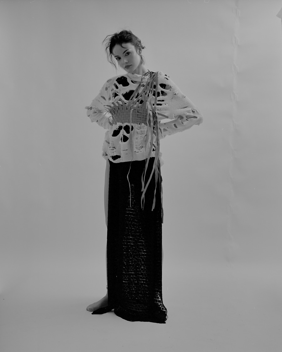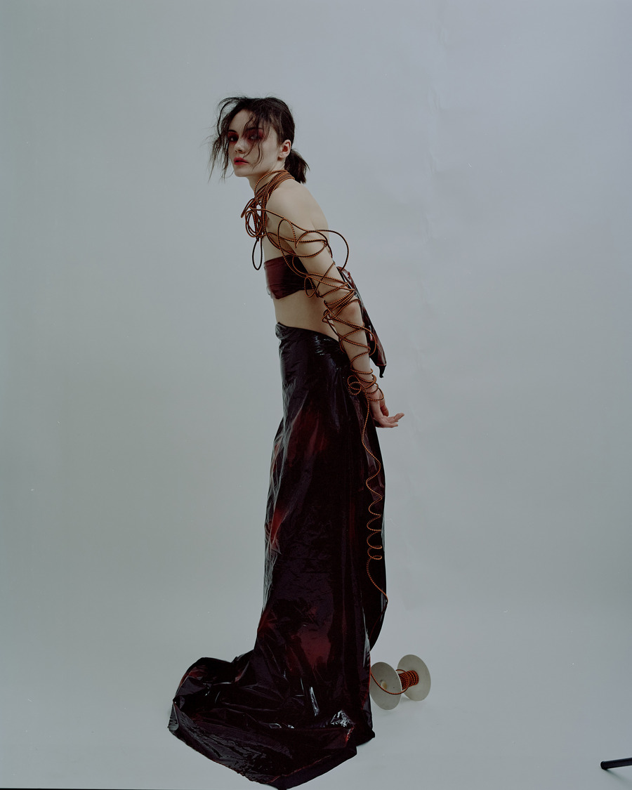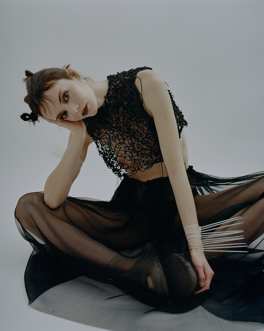 All the outfits were made directly on the model during the shoot. Perform by the designer Arman Avetikyan. Still-lifes were made from the same samples.