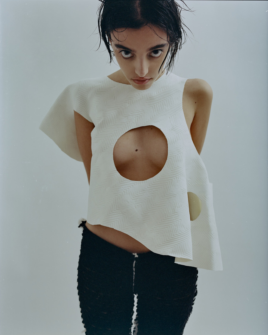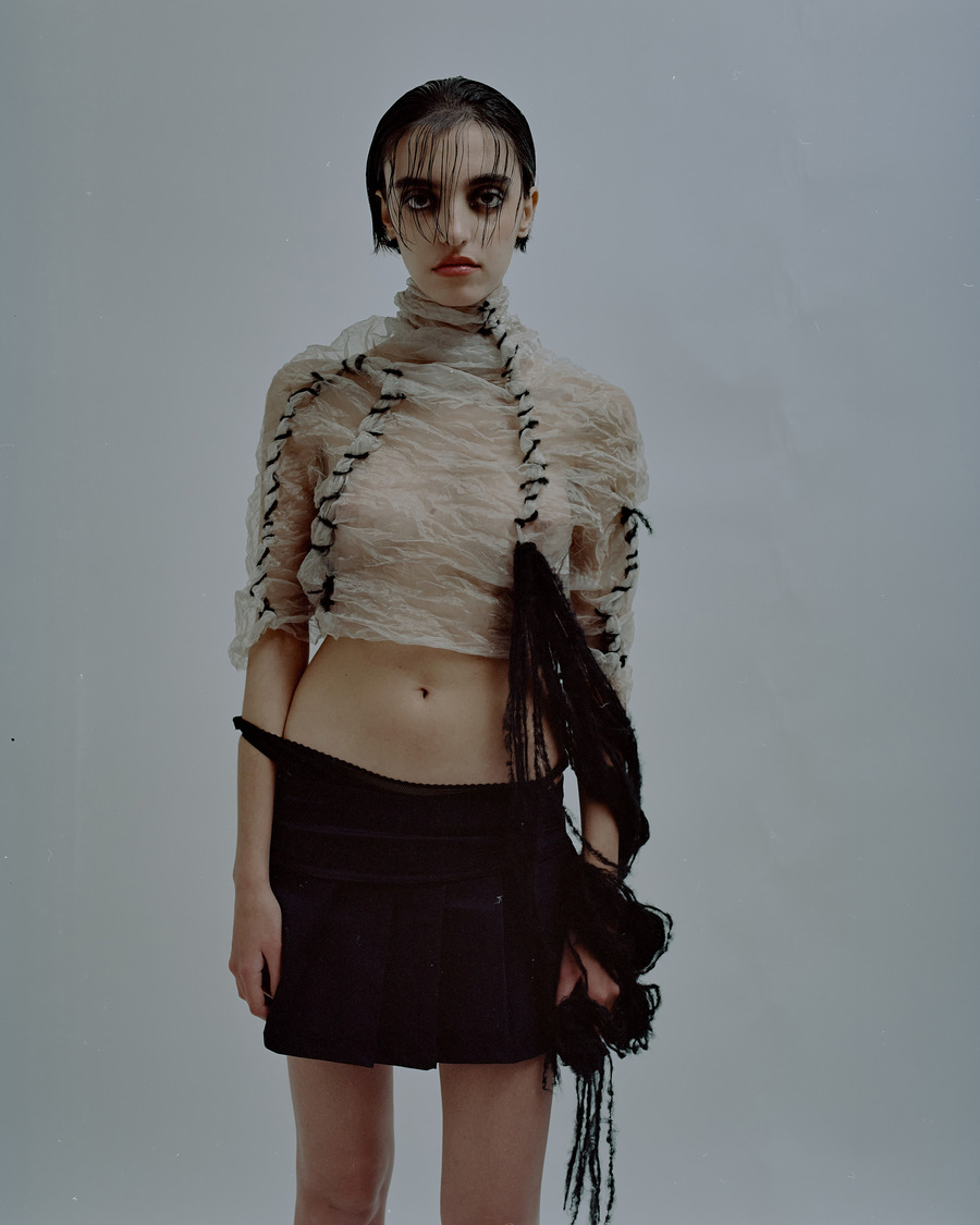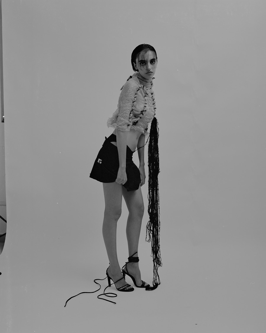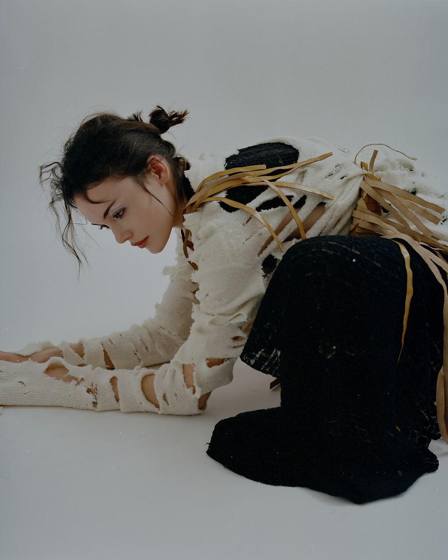 All the outfits were made directly on the model during the shoot. Perform by the designer Arman Avetikyan. Still-lifes were made from the same samples.